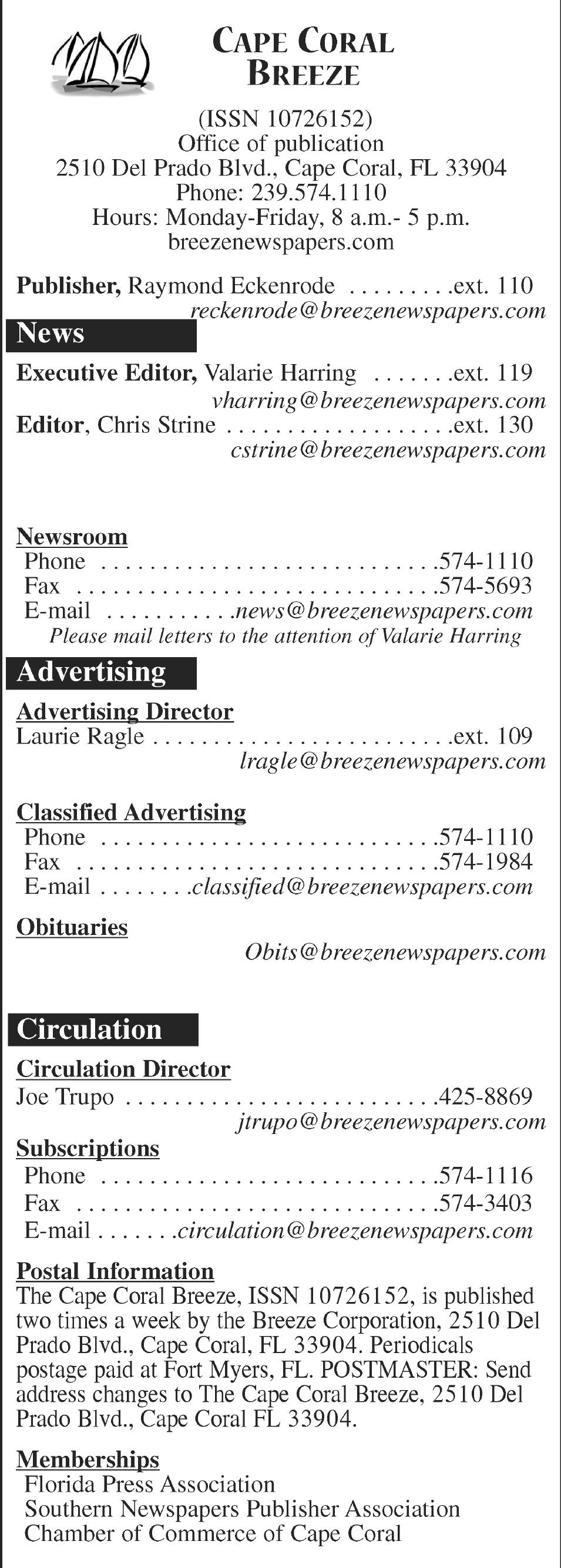 • Phone 239-574-1110 – Fax 239-574-5693