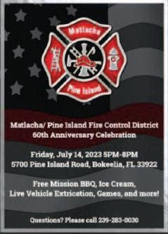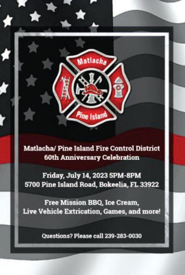 WEEk of JulY 12, 2023 VolumE 47, NumbEr 10 pINEISlaND-EaglE.com FLIER INSIDE Matlacha/Pine Island Fire Control District to hold special celebration Friday INSIDE insidetoday Cat of the Week...............21 CERT Update.....................7 Guest Comments.........4&6 Island Mahjongg.............20 On the Water....................16 Tides................................21 Classifieds & Obituaries 60th anniversary