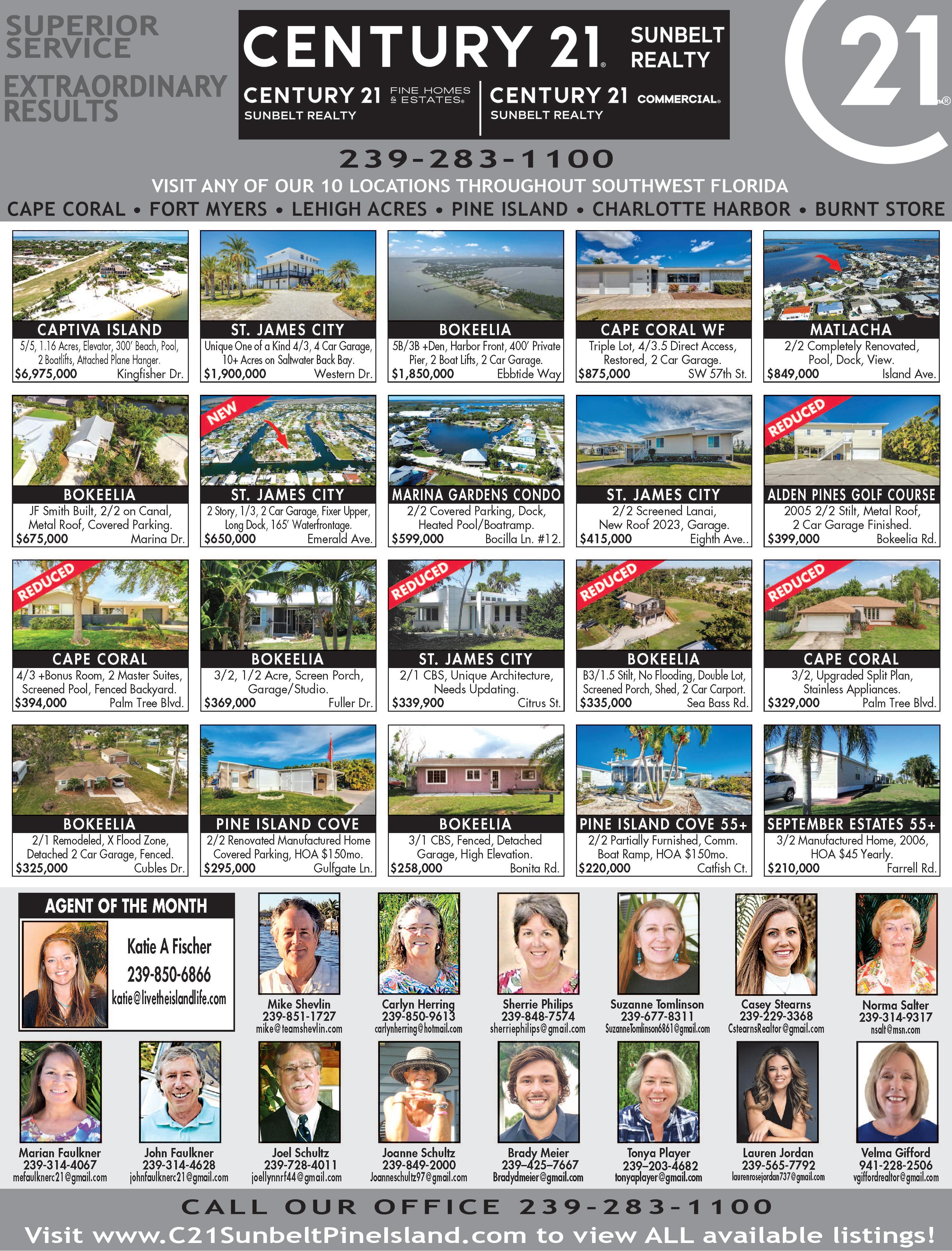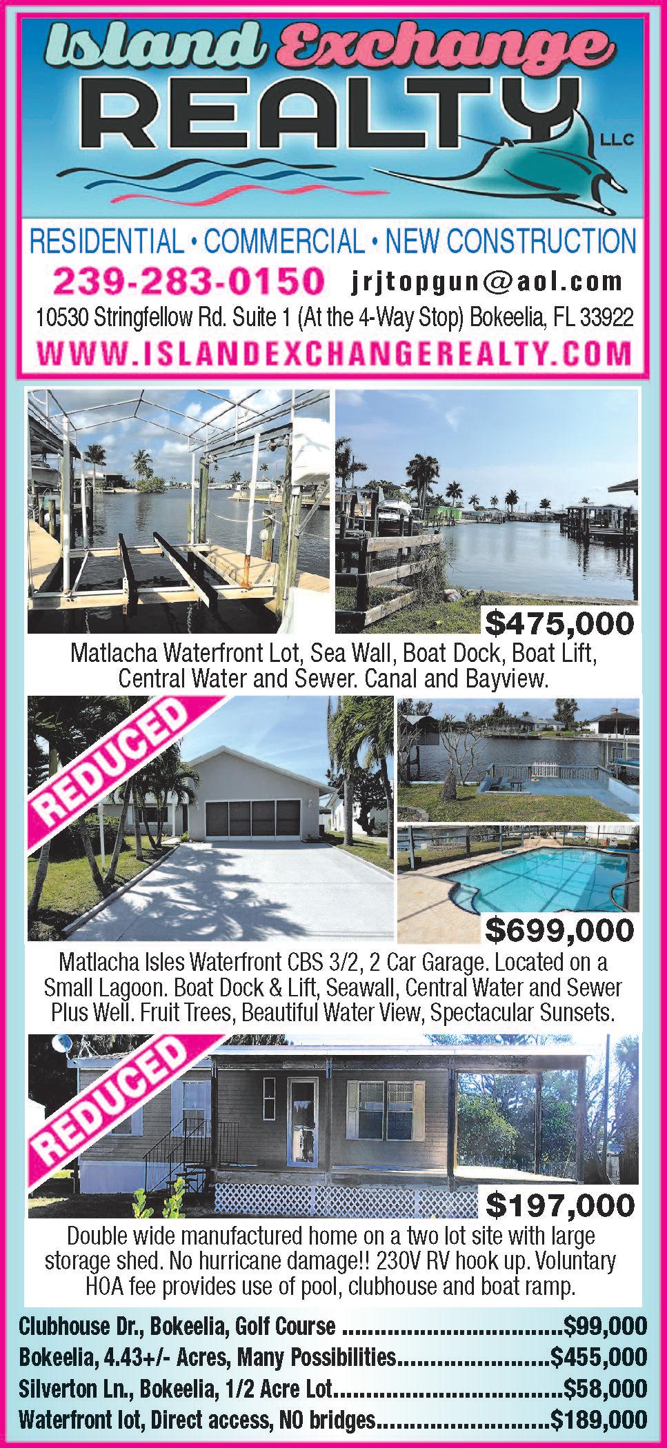 n Boat ramps: Alva, Davis, Imperial River, Lavender’s Landing, Matlacha, and Pine Island Commercial Marina