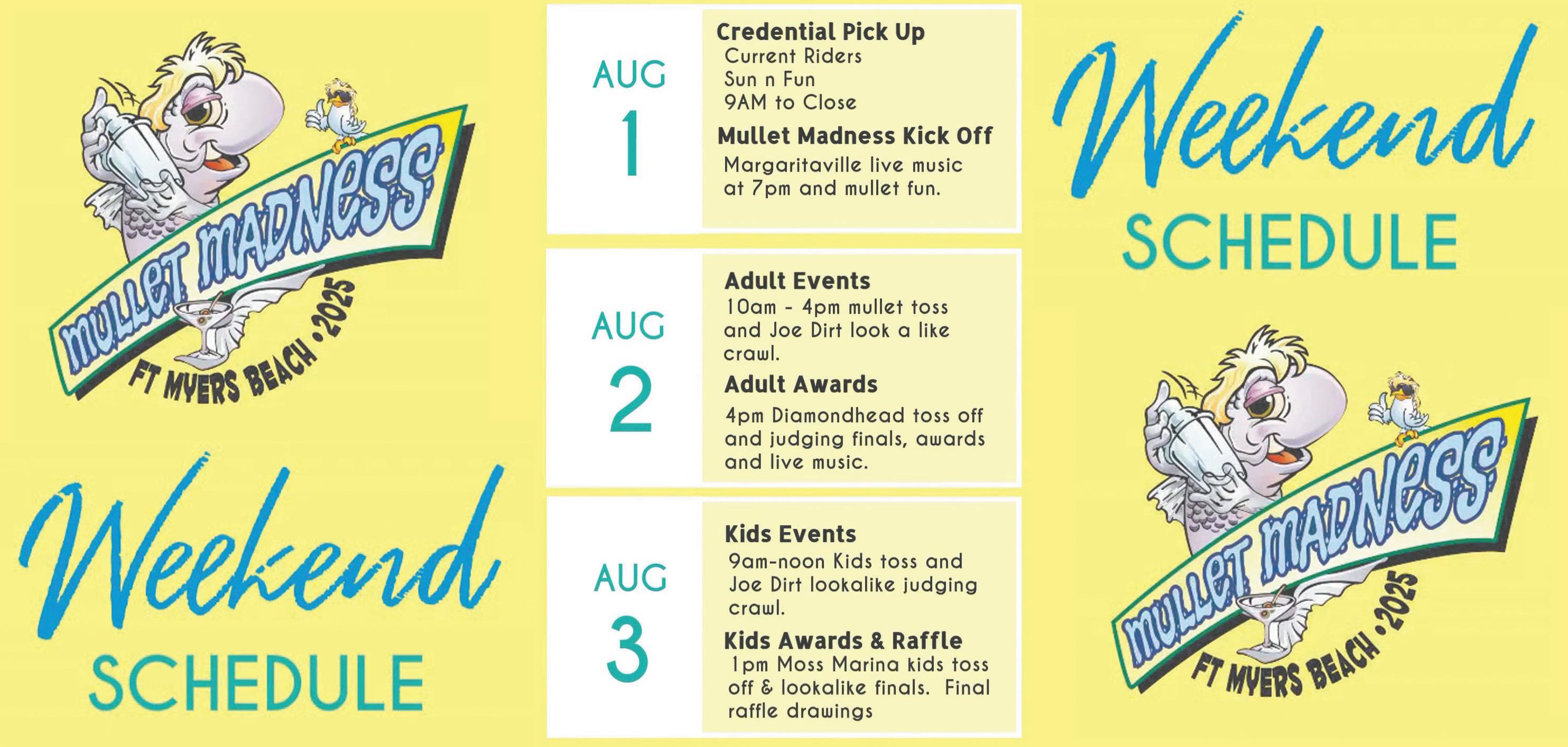 The contest and pub crawl tournament will take place for adults on Saturday, Aug. 2, with a children’s mullet-throwing contest on Sunday, Aug. 3.