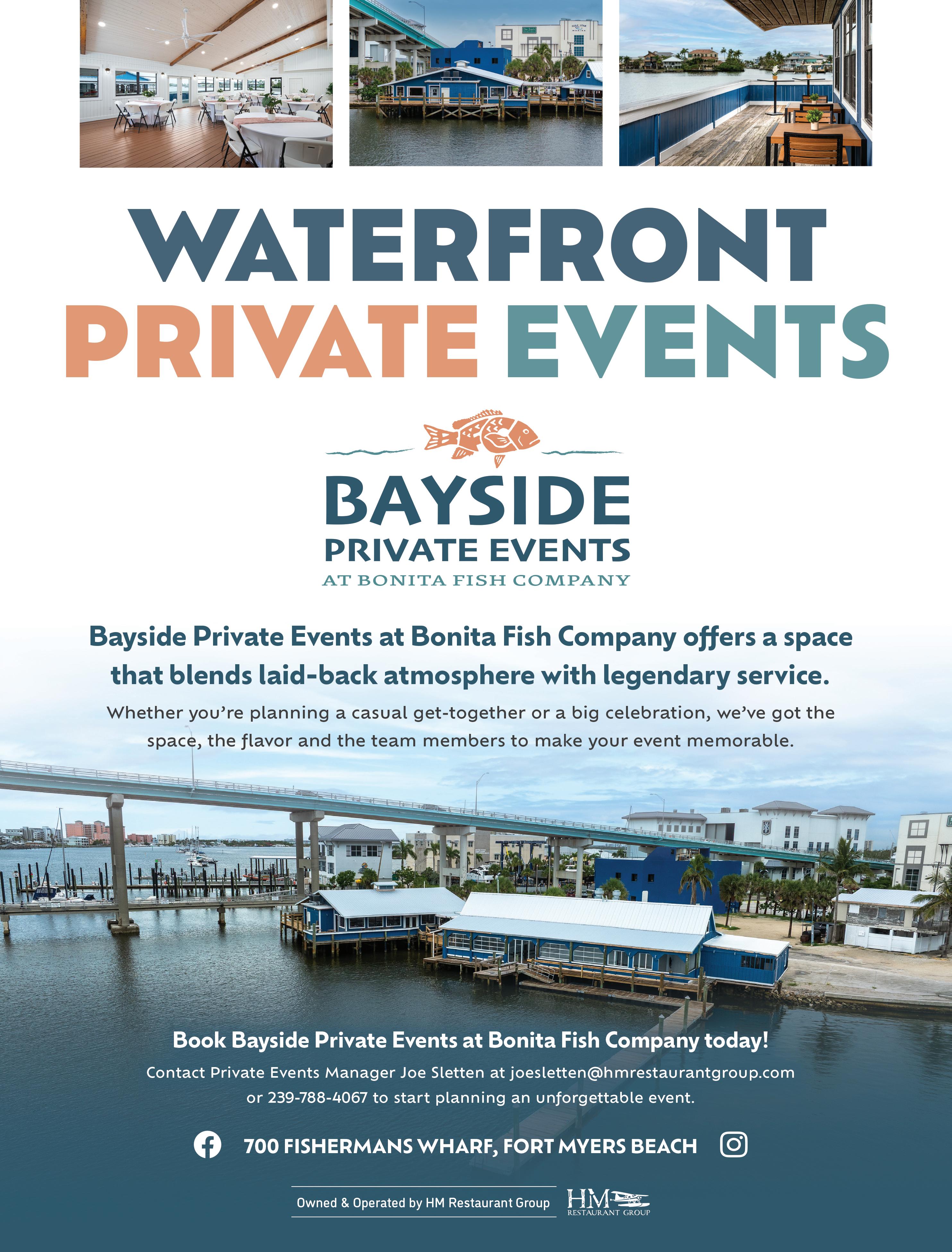 Bayside Private Events at Bonita Fish Company offers a space that blends laid-back atmosphere with legendary service. Whether you’re planning a casual get-together or a big celebration, we’ve got the space, the flavor and the team members to make your event memorable.
