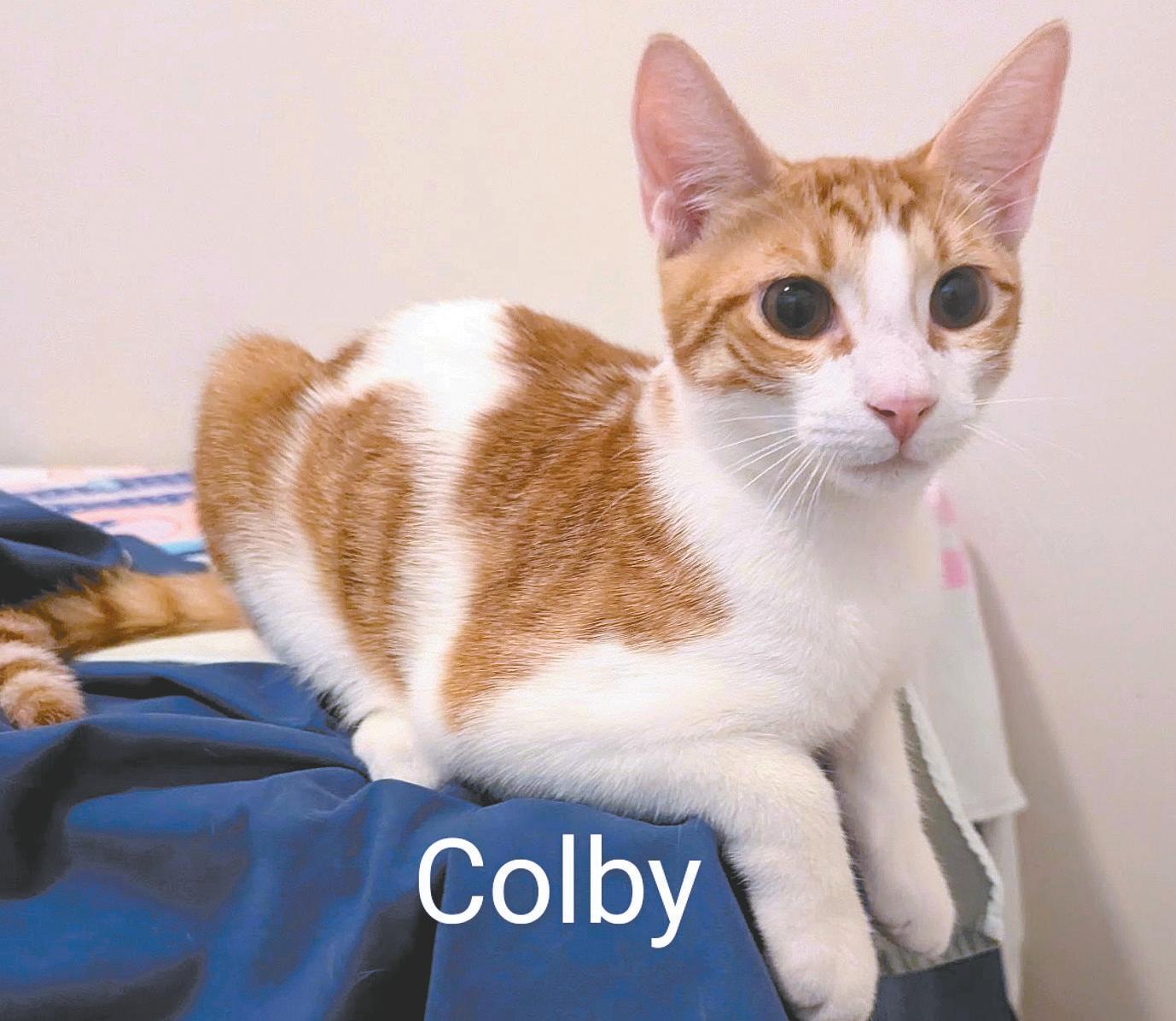 Colby is a 5-month-old orange and white male kitten. He is full of fun and loves to run and play with his siblings. Orange cats and kittens are hard to come by.