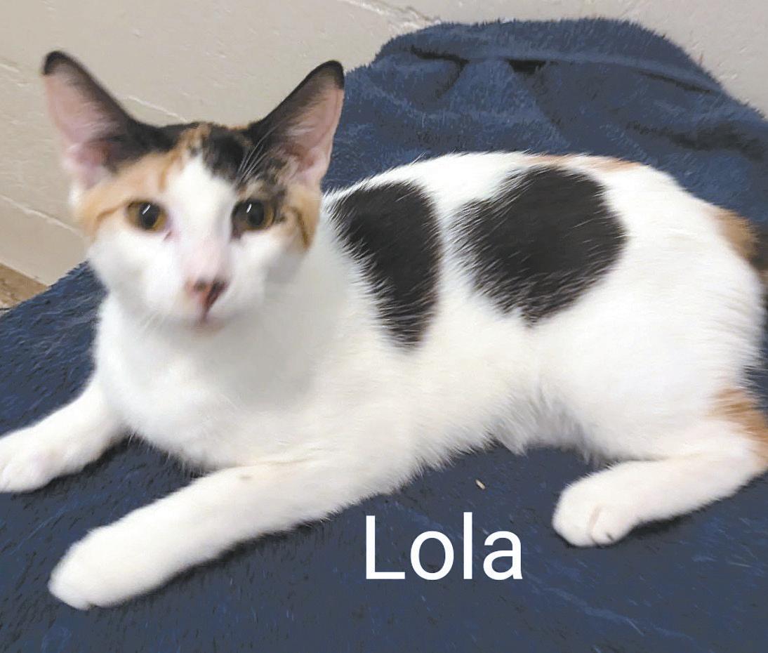 Lola is a 5-month-old female calico kitten and a sibling to Colby. She is mostly white with calico colors. She looks like her mom and is very sweet and affectionate.