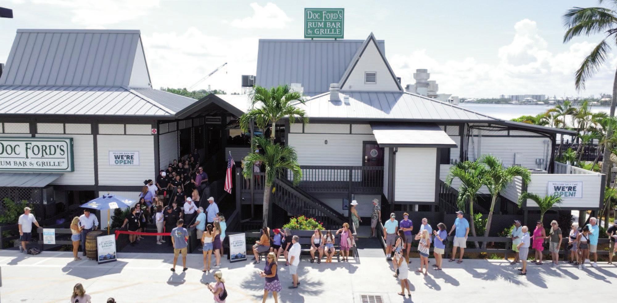 In a long-awaited move, Doc Ford's Rum Bar & Grille reopened on Fort Myers Beach Monday with a ribbon-cutting ceremony And a line was out the door to be the first ones in