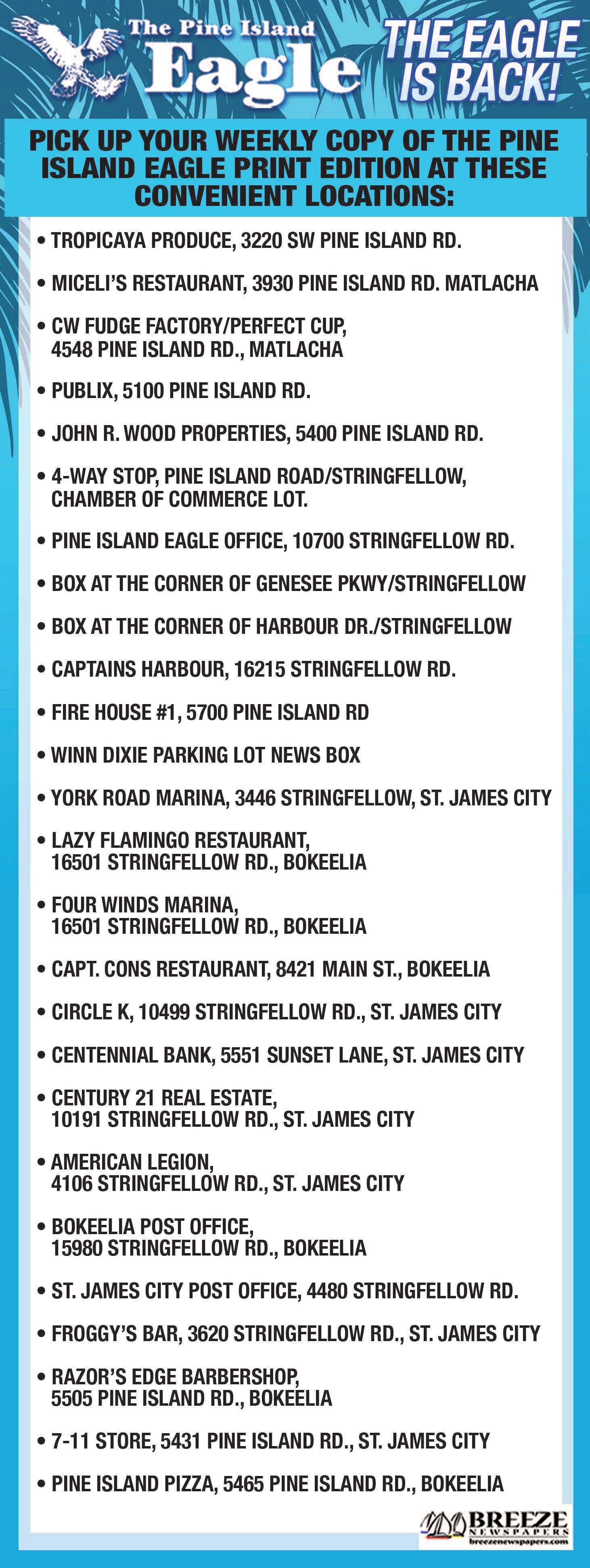 P a g e 1 7 ■ W e e k o f W e d n e s d a y , A u g u s t 1 6 , 2 0 2 3 b r e e z e n e w s p a p e r s . c o m P i n e I s l a n d E a g l e