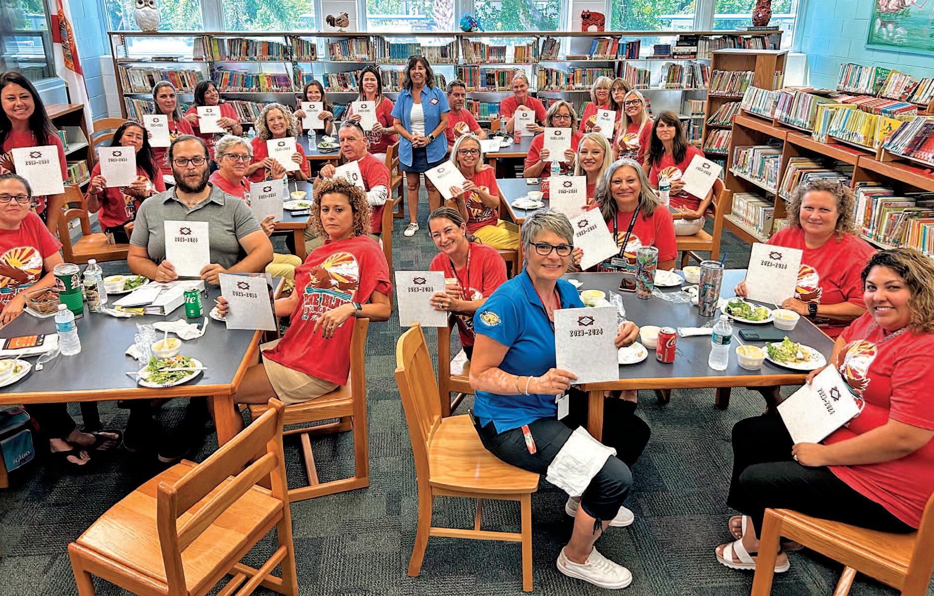 The staff at Pine Island Elementary enjoying lunch provided by Centennial Bank.