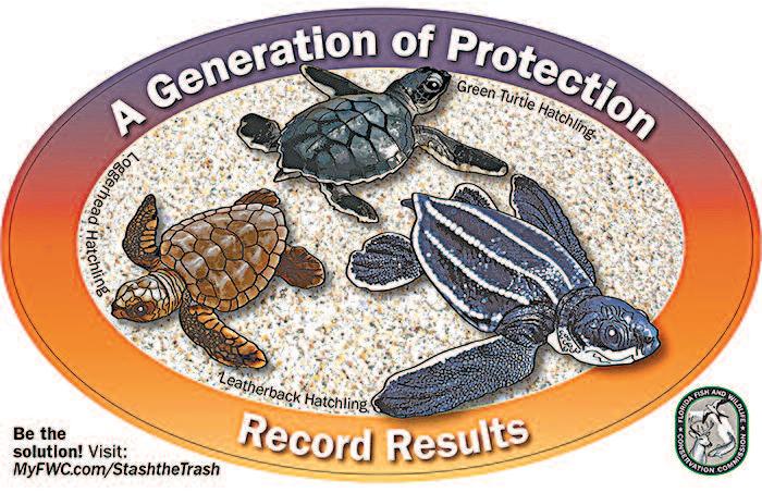 N e w , w a t e rp r o o f d ecals featuri n g o r i g i n a artwork are leased ever in July and able for a $5 donation at your local tax collector’s office Donations for decals go directly to funding manatee and sea turtle research, rescue and management efforts