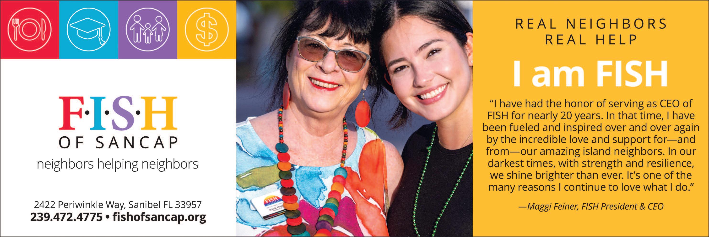 For more information about the program or to schedule an appointment, contact Senior Services Director Erika Arnowitz at 239-472-4775 or erika@fishofsancap org F o r m o r e i n f o r m a t i o n a b o u t F I S H , v i s i t www fishofsancap org or call 239-472-4775