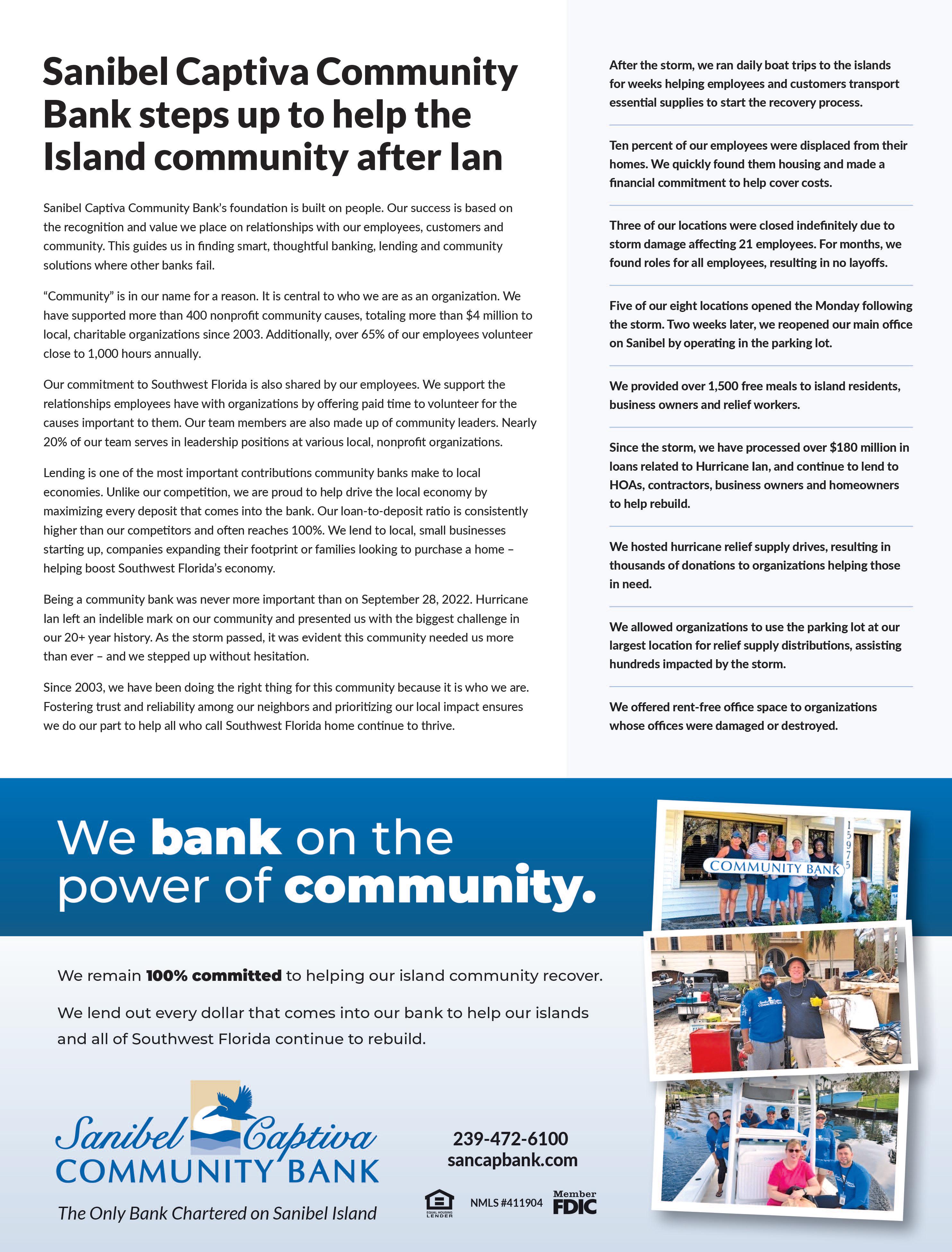 (Editor's note: No information was provided or available as of press time for the Captiva Civic Association, SanCap