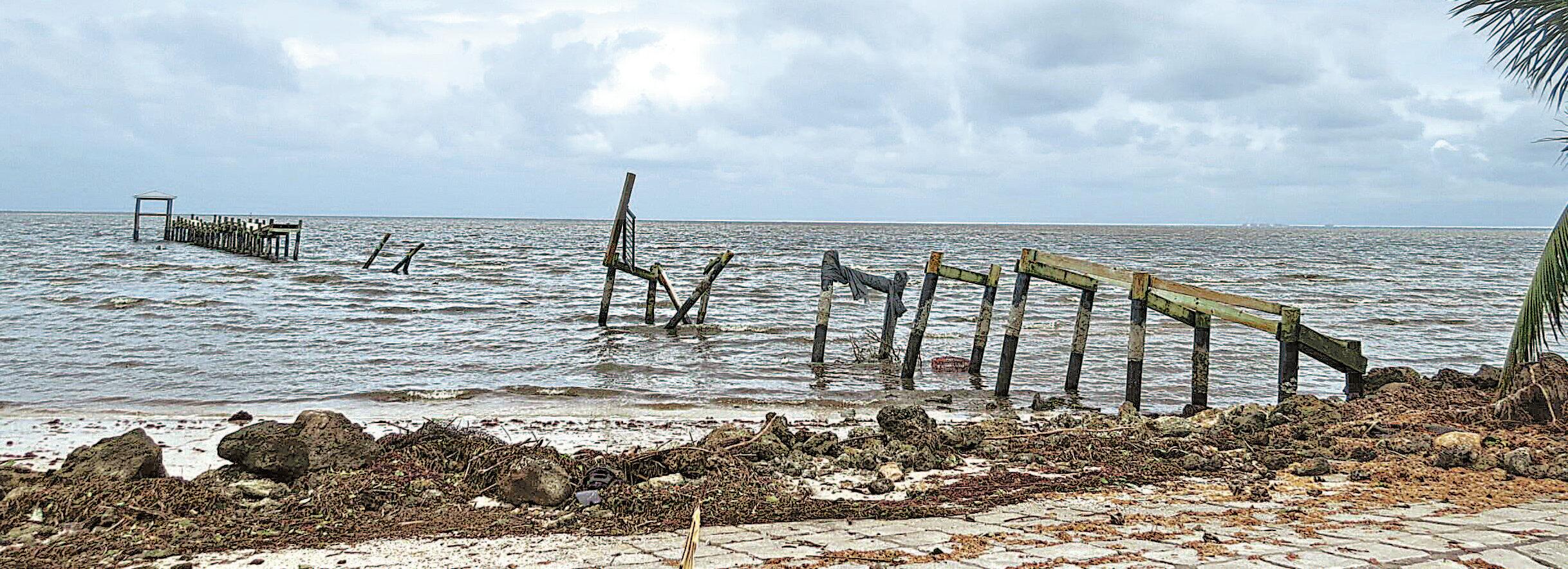 What’s left of the Bokeelia Pier, across from Capt’n Cons, after Hurricane Milton