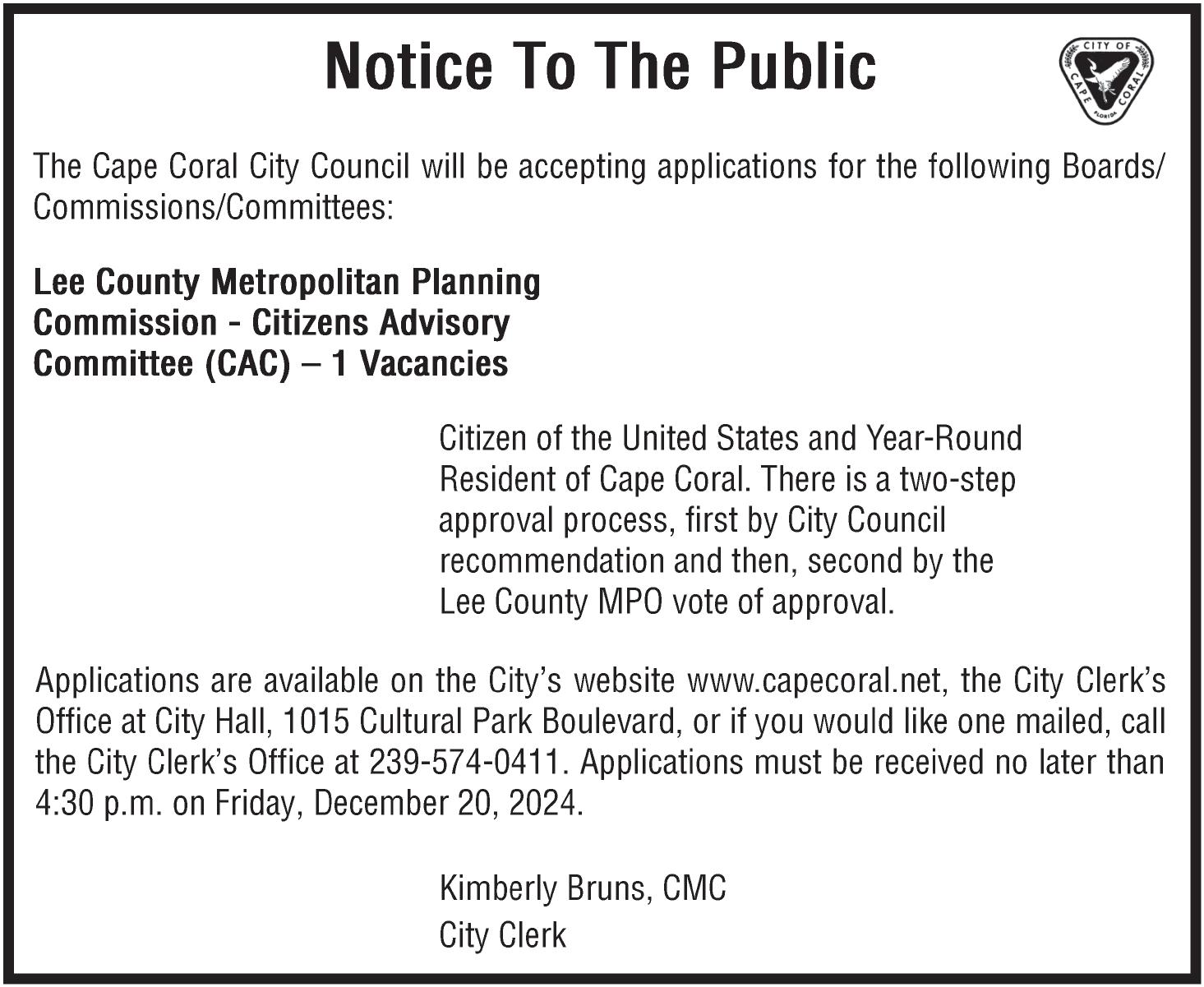 Congratulations to all of the newly elected members to the Cape Coral Council Now let’s get to work on issues that have been sidelined or slowed by parks development Parks are important, but development should not be at the cost of moving our city ahead with more important items Traffic needs to be better controlled through lowering speed limits and installing roundabouts that keep traffic moving instead of detaining traffic at stop lights that need constant “re-timing ” Roundabouts, while slowing traffic, keep it moving. This actually saves time So slightly slower is much safer and time is saved not waiting at lights