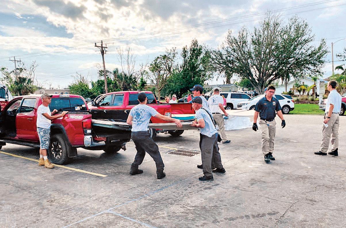 Posted on his Facebook page, Things to do on Pine Island, by islander Kevin Russell, Mickuleit said instructions were to come at 9 a m on Monday, Nov 28, however, they were already lining up at 8 a m These materials were for anyone in the community who needed them, given out on a first come, first served basis, he said