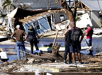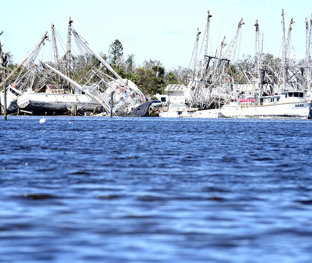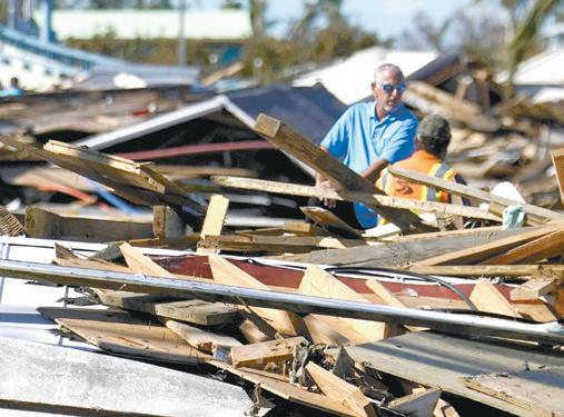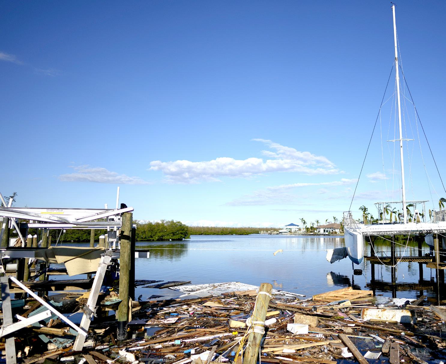 At the Get Away Mari na, the storm surge lifted a dozen large boats — up to 48 feet (14 meters) long — and carried them across the parking lot and a fourlane road before deposit ing them in a mangrove preserve. The surge also blasted the walls off the marina’s offices and flat tened its second floor.