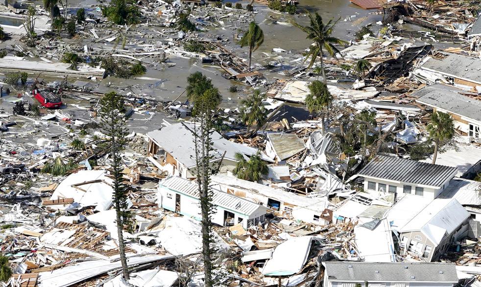 Damaged homes and debris are shown in the wake of Hurri cane Ian, Thursday, in Fort Myers Beach, Florida.
