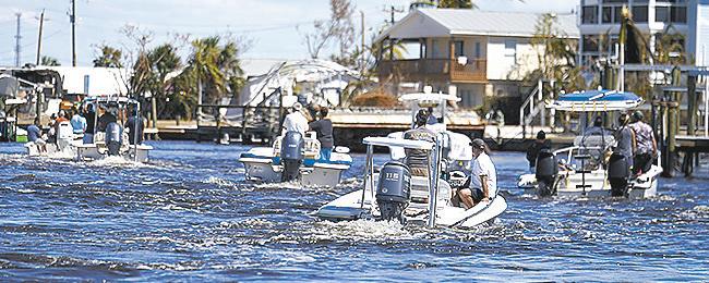 FORT MYERS BEACH, Fla. (AP) – On the road into Fort Myers Beach, cars are left abandoned in the roadway, where they stalled when Hurri cane Ian’s storm surge flooded their engines and their driv ers couldn’t continue. Broken trees, boat trailers and other debris litter the road.