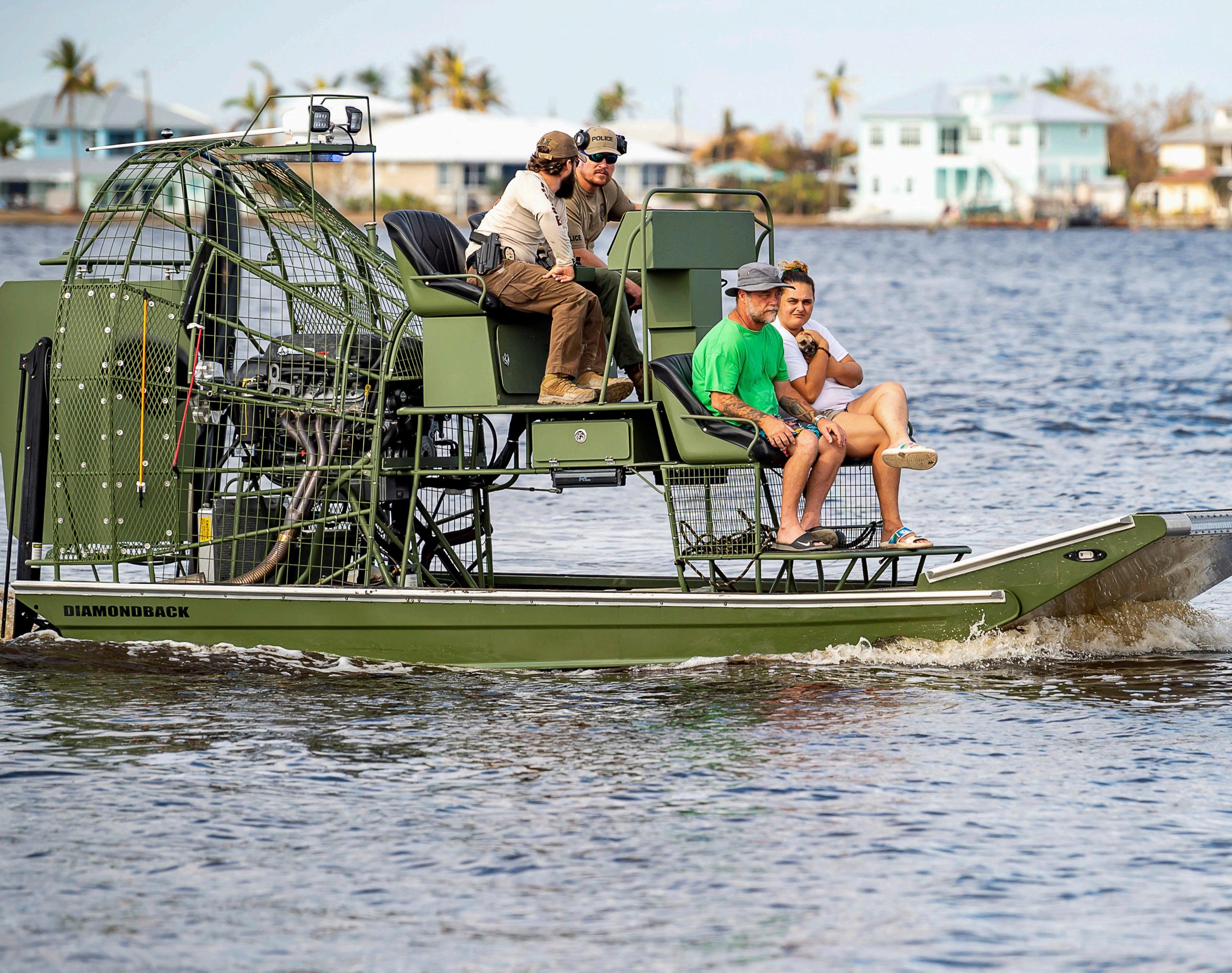 • The U.S. Coast Guard is coordinating Combat Rubber Raiding Craft and civilian tour boats to evacuate survivors, provide food, water and medivac service on Pine Island. The National Guard and the Coast Guard are landing helicopters on barrier