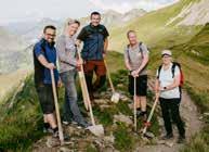 Wanderwege. Im Dorf Damüls halten Freiwillige und Gastgeber*innen die Wanderwege der Umgebung, ein Wegenetz von rund hundert Kilometern, instand. Es werden dazu für bestimmte Abschnitte Teams bestimmt, um die nötige Arbeit zu leisten. Das stärkt auch die Dorfgemeinschaft und den Zusammenhalt untereinander.