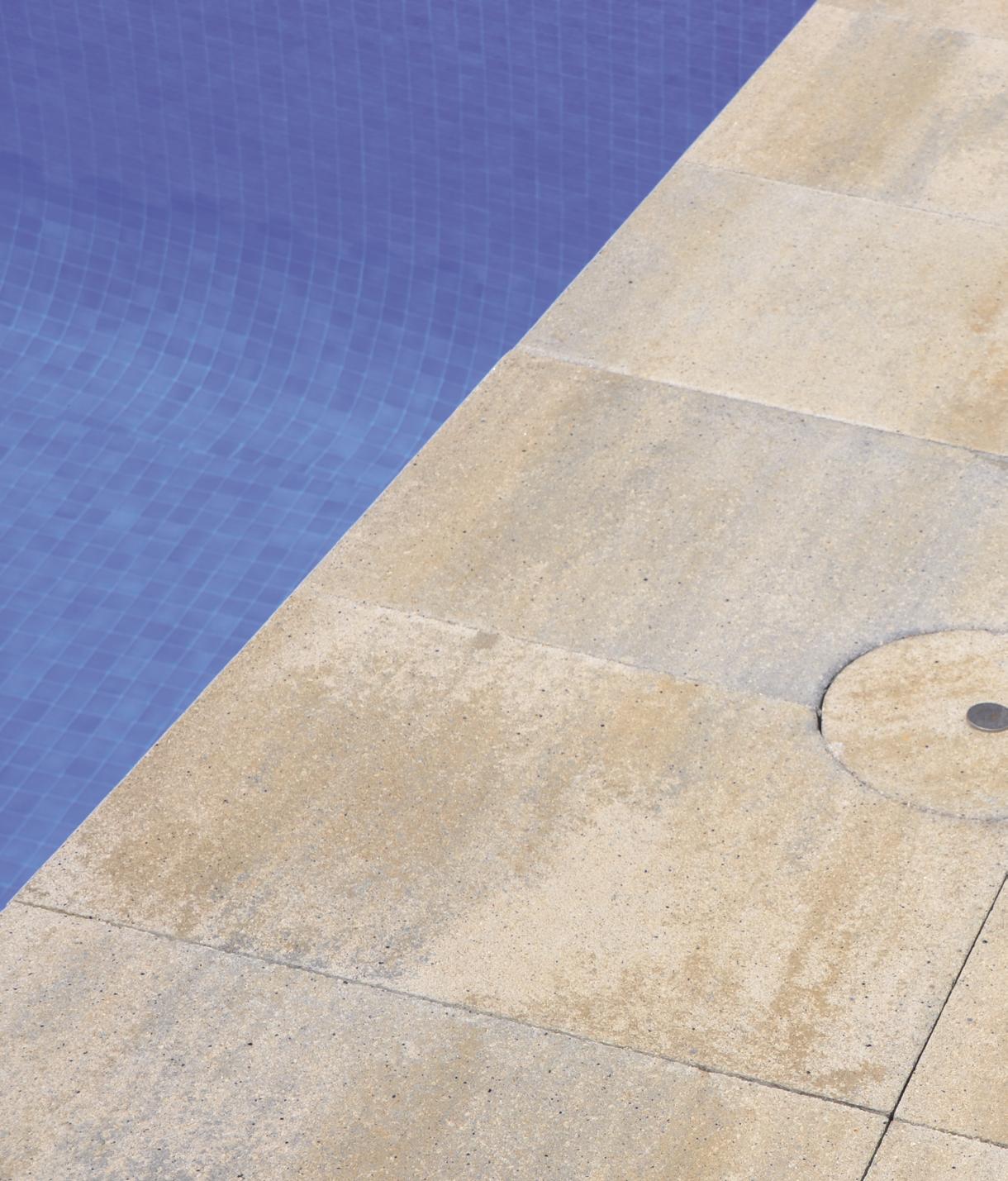 La zona que rodea la piscina acostumbra a estar húmeda. La Llosa Vulcano es un pavimento seguro para pies descalzos y es agradable al tacto. Cumple con la Clase 3. Rd>45 UNE EN 12633 de máxima seguridad antideslizante.