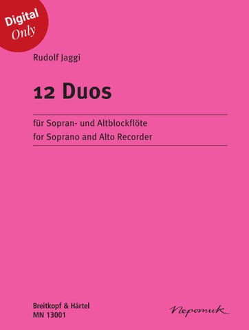 Die 12 Duos für Sopran- und Altblockflöte eignen sich sowohl für den Gebrauch im Unterricht als auch für das private Musizieren. Die beiden Stimmen haben den gleichen Schwierigkeitsgrad. Die Stücke sind nicht progressiv, sondern nach musikalischen Gesichtspunkten geordnet. Deshalb lassen sie sich sowohl einzeln wie auch als Suite aufführen. Jedes Stück geht auf ein jeweils spezielles musikalisches Problem ein und weist dabei seinen eigenen Charakter auf. Die Titel dienen als Hilfestellung, diesen zu realisieren. Die Metronomangaben, Artikulationszeichen und Bindebögen sind als Vorschläge gemeint.