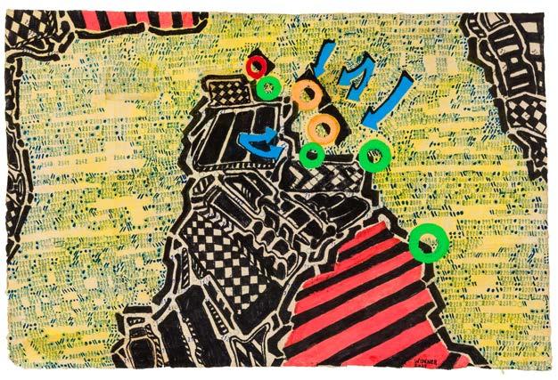 Marker, ink and paint on paper
