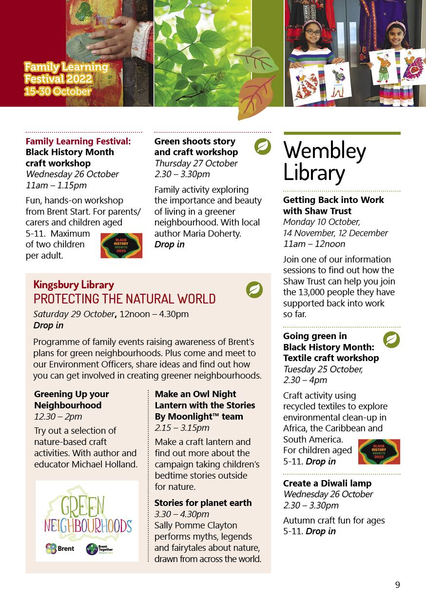 What's on - autumn events from Brent libraries, Arts and Heritage