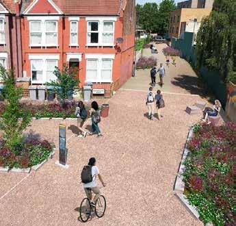 into a new waterside neighbourhood of 876 homes. Alongside the homes, there are new landscaped public spaces, improved walking and cycling routes, children’s play areas, and a new green corridor along the Wealdstone Brook.