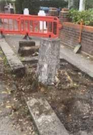 Council crews cleared overgrown spaces and cut back stumps that risked creating trip hazards and uneven pavements, replacing cluttered patches with smoother, level surfaces. Report an issue with a tree by scanning the QR code.
