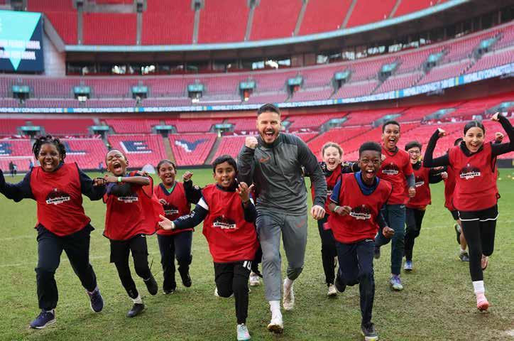 Schoolchildren from eight Brent schools scored the ultimate VIP experience at Wembley Stadium, racing onto the world-famous pitch for football fun and behind-the-scenes magic. The authorised pitch invaders even met freestyle star Billy Wingrove (centre) and England mascots Rory, Mane and Paws in a day designed by The FA to celebrate and inspire the local community.