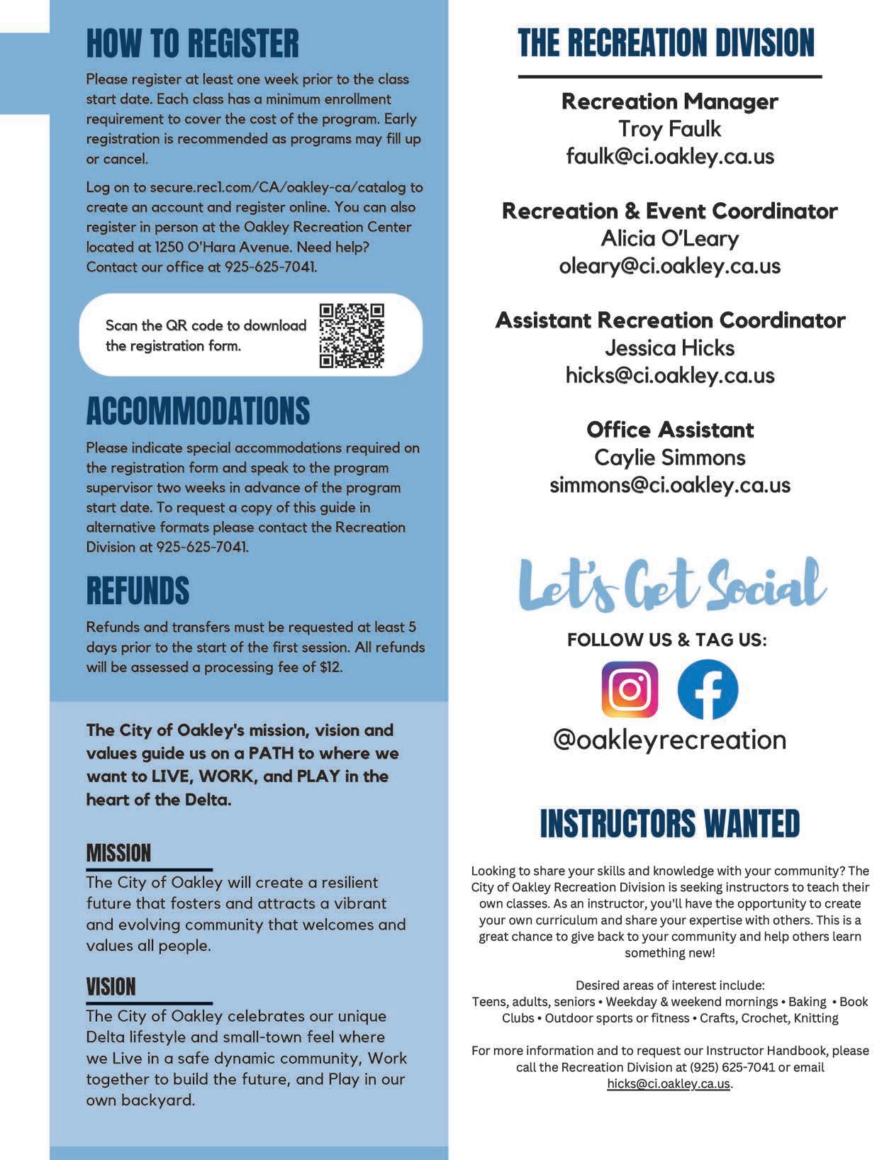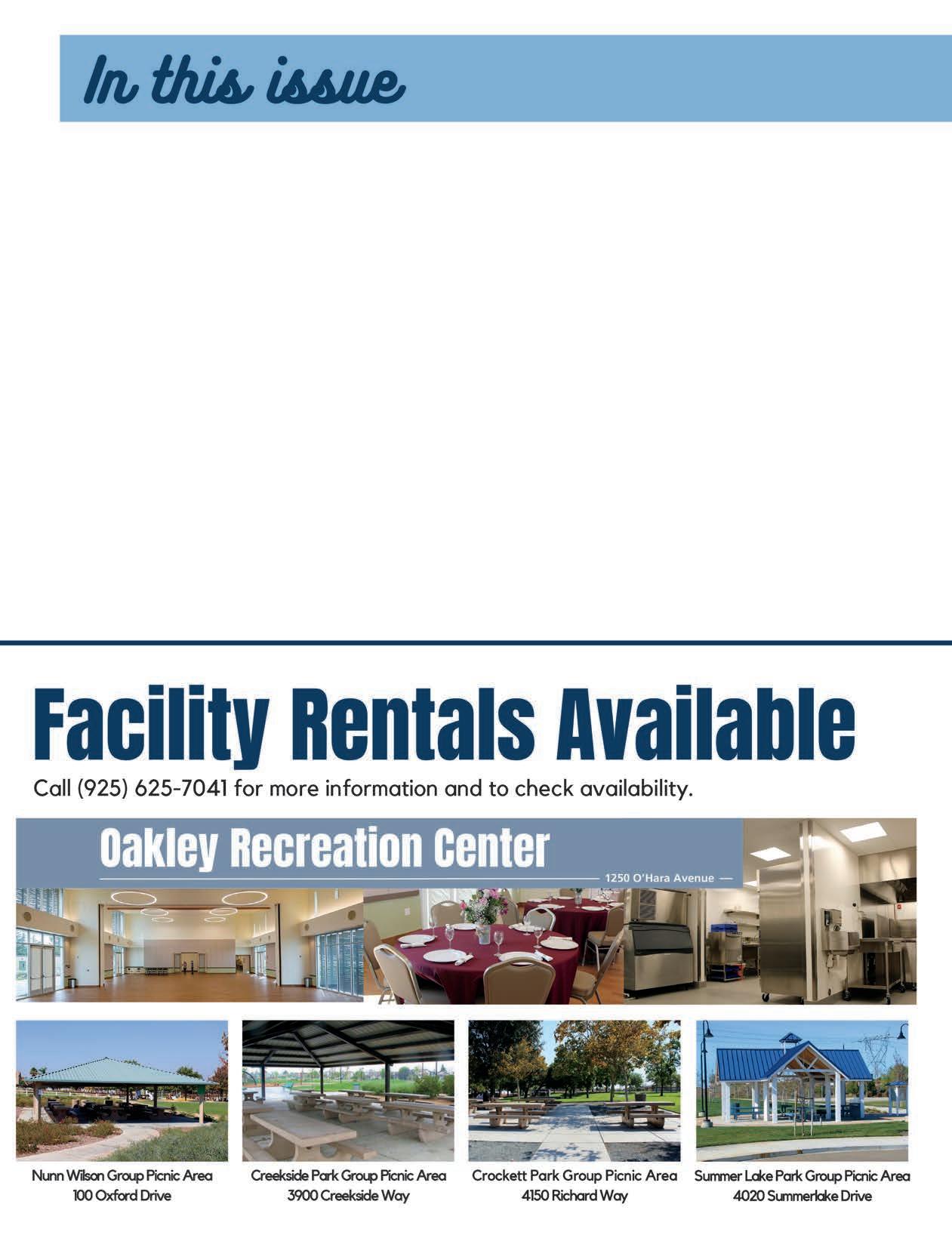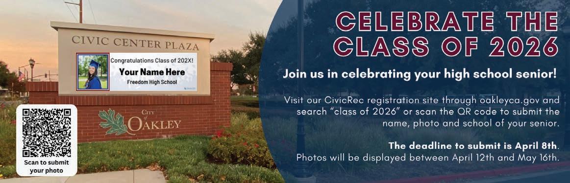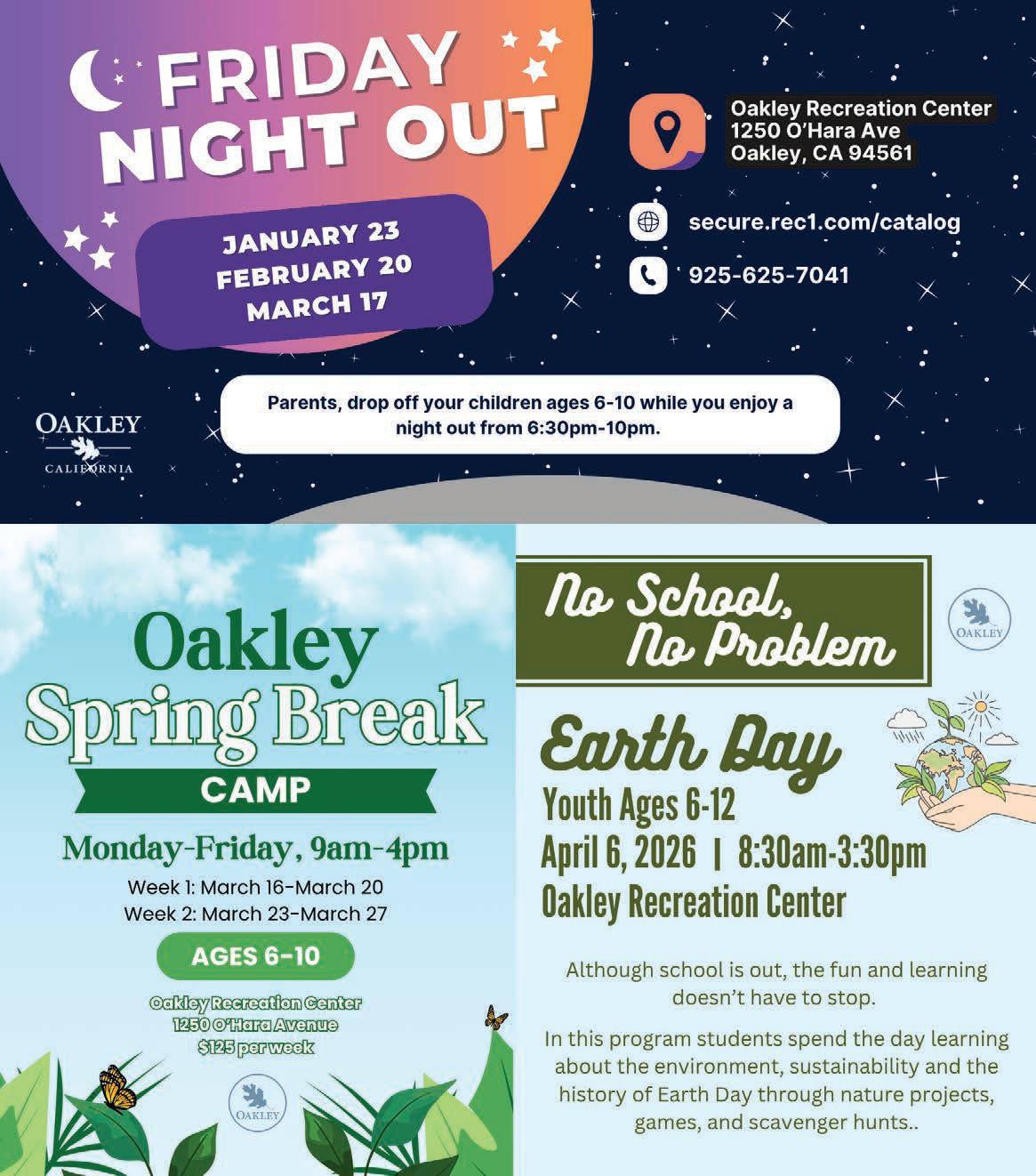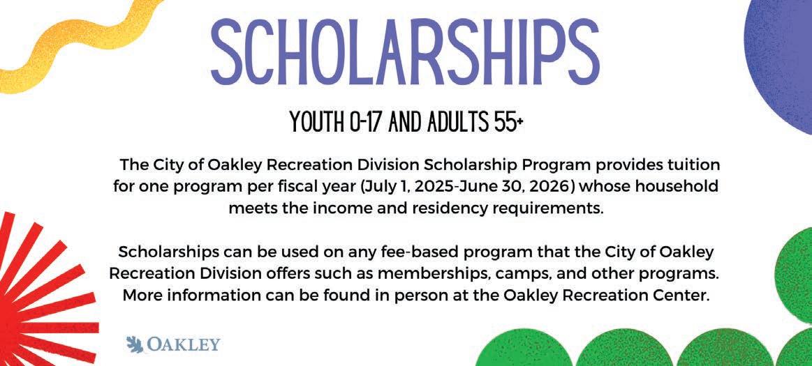 There are already exciting Seasonal Celebrations scheduled for the first half of 2026 including the Senior Luau (January 21st), Valentines Ball (February 11th), St Patrick’s Day (March 17th), and Earth Day (April 22nd) . For more information on Studio 55, go to page 21 of this booklet or call the Oakley Recreation Center at 925-625-7041