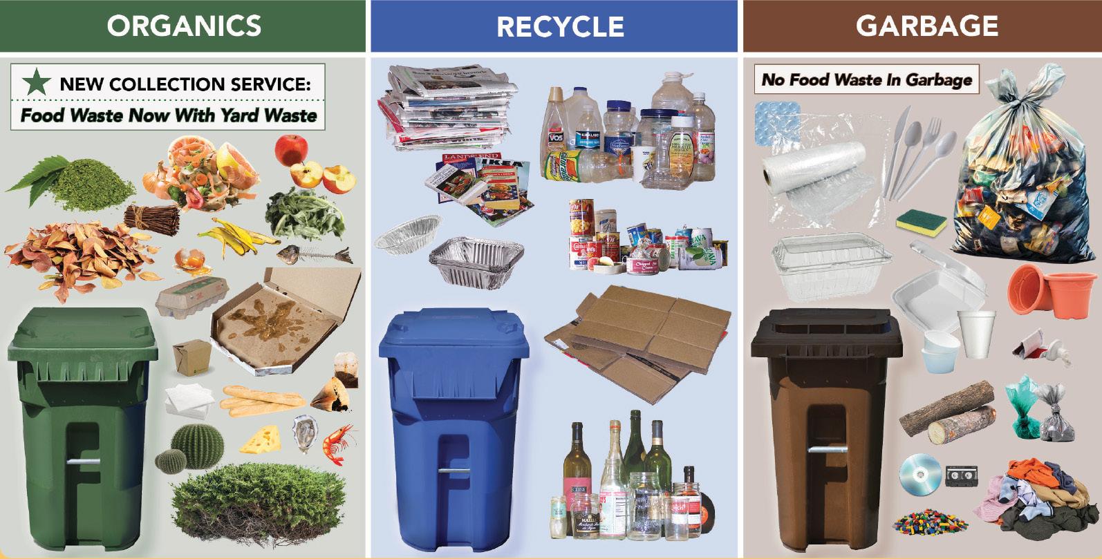 Organic waste includes yard waste, food waste, and food-soiled paper products. These items will now be composted.