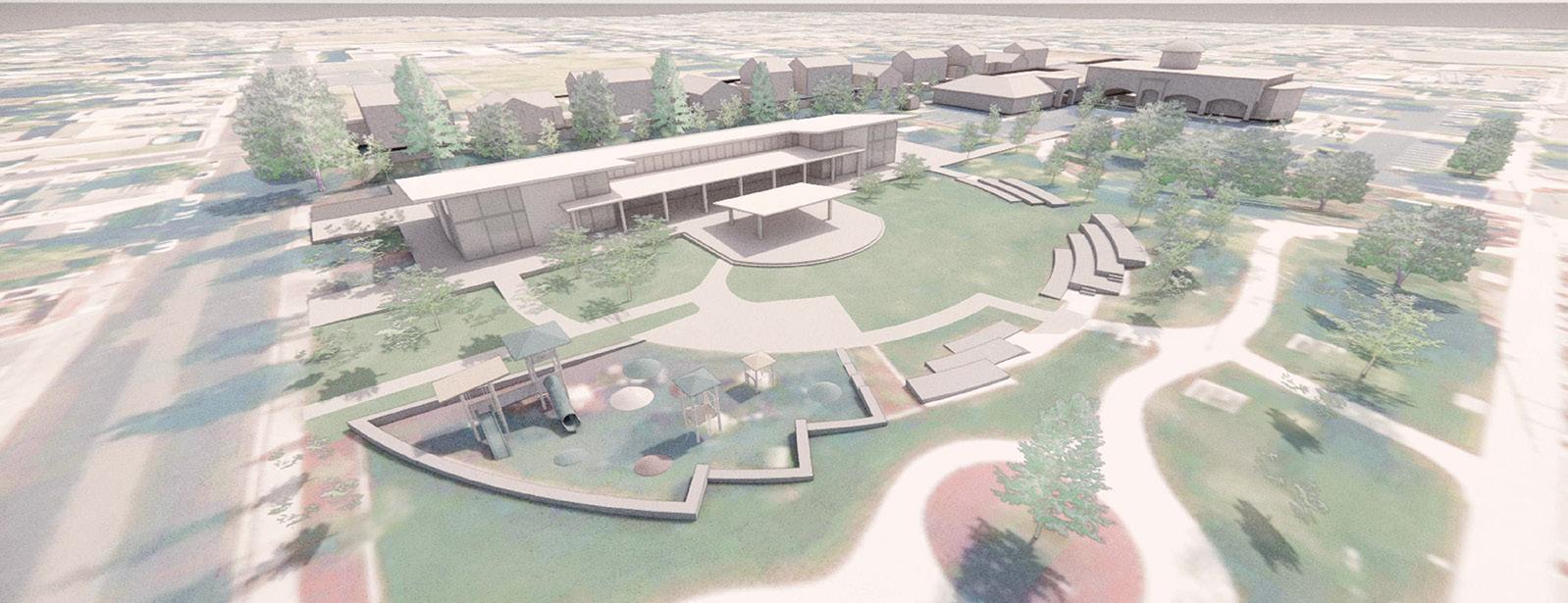 The amphitheatre and bandstand pavilion in Civic Center Park will also be reoriented and rebuilt around the front of the library and its “grand porch,” according to Susi Marzuola of Siegel & Strain, allowing it to better host events of all sizes. Marzuola said that this redesign is meant to encourage an indoor-outdoor relationship between the park and the library; the more open park area transitions through the grand porch and pavilion into the covered and shady library area inspired by the nearby Delta landscape transitioning from open water to solid ground. All of the features are designed to fulfil at least one of the library project’s seven goals, such as to “create a flexible, multi-functional community hub,” to “support lifelong learning and digital literacy,” and to “celebrate local identity and create civic pride,” according to a project booklet.