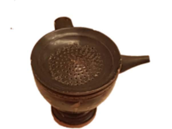 24 Des expérimentations faites avec des copies sur lesquelles des bouts de cuir ou d’éponge ont été mis en guise de tétine ont été réalisé et soutiennent cete hypothèse. Quant à la largeur maximale du vase au niveau du bec, elle favorise sans conteste le versage du contenu.