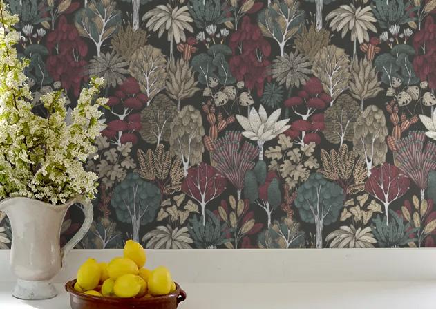 Collection inspired by the grandeur of nature with vibrant botanical designs perfectly suited to an exuberant maximalist scheme. Also featuring modern geometric prints and faux raffia designs.