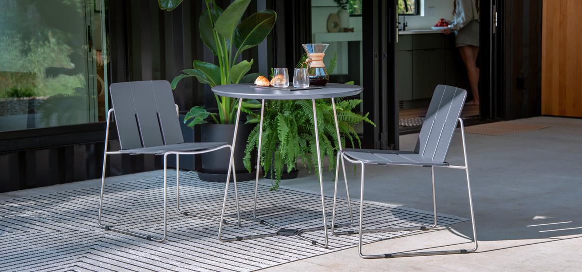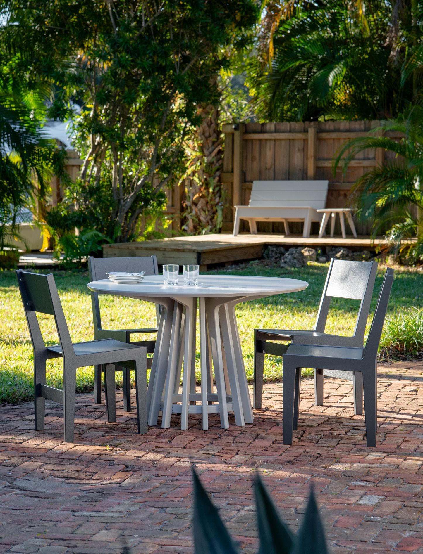 Rooted in the timeless simplicity of the Aldo Leopold bench, the Here and There Collection reimagines an American classic for modern outdoor living. Designed and developed with design firm Argenta Park, the collection transforms the Aldo bench’s familiar, functional form into a refined family of pieces. Featuring ergonomic contours, clean joinery, hidden fasteners, and Loll’s durable recycled materials, the result is a contemporary expression of Leopold’s design legacy as a cohesive offering of a bench, dining chair, and dining tables built for how people gather today.