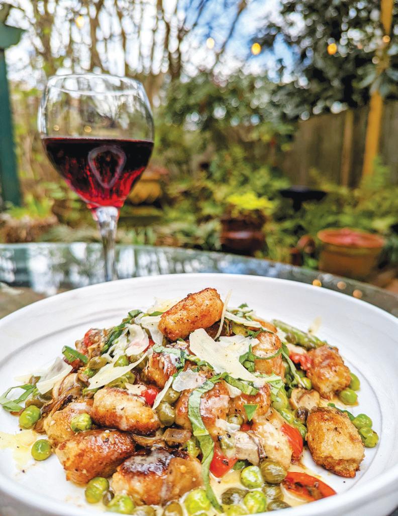 The historic Bahnson House, the 1920s mansion where Chef Tim Grandinetti created Spring House Restaurant, Kitchen & Bar, is perfect for an occasion dinner, small bites on the patio, a casual meal in the bar.