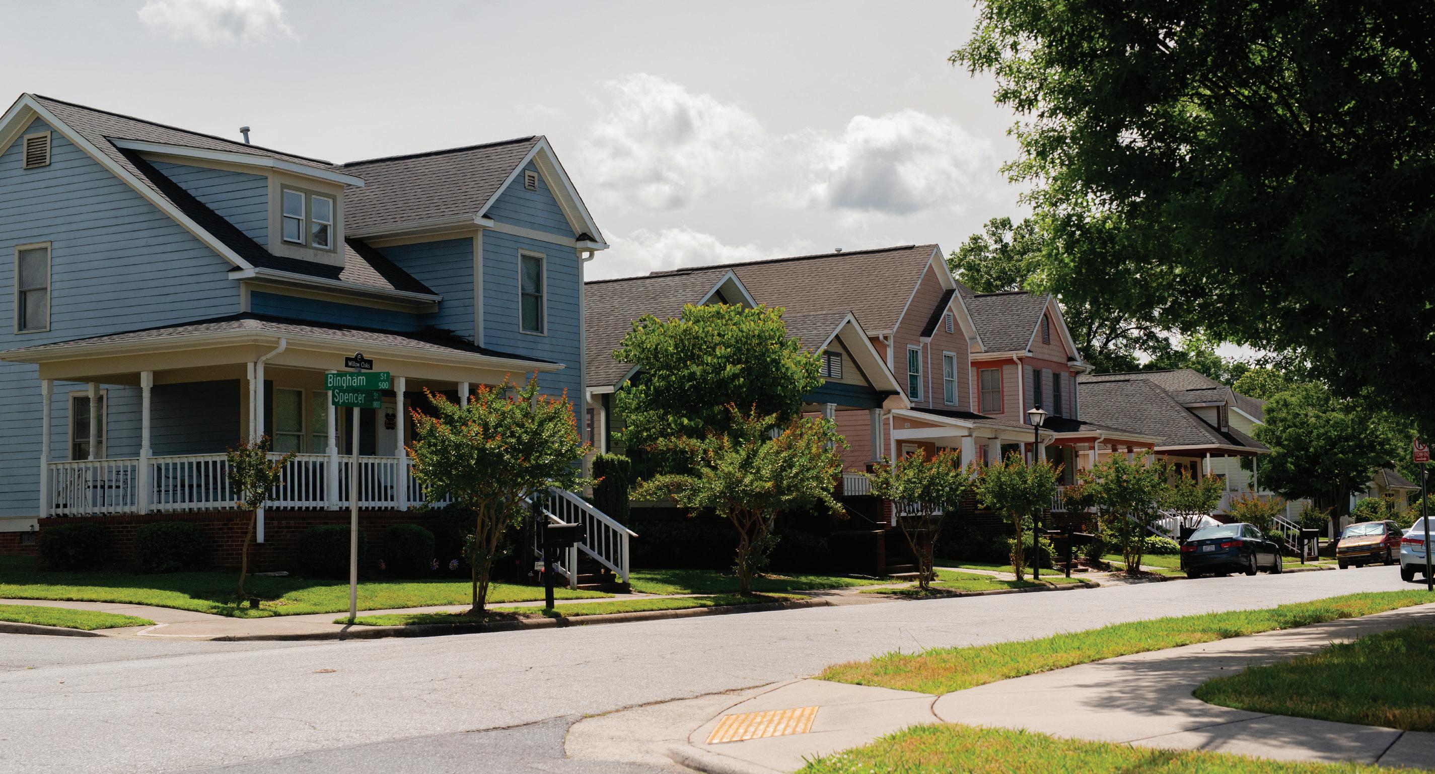 Spencer Street draws a stark line between the bright and modern townhomes of Willow Oaks and the older houses and apartments across the way.