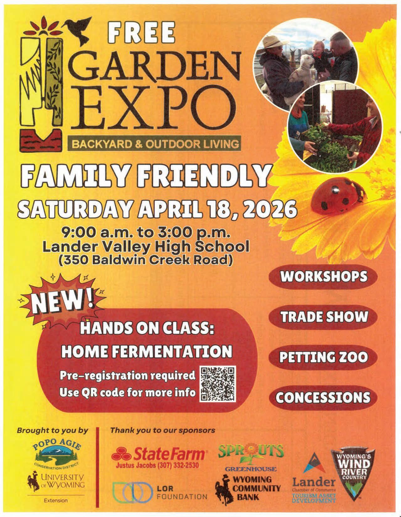 The Garden Expo, brought to you by the Popo Agie Conservation District and UW Extension, is a free family friendly event. Workshops and tradeshows on the topics of gardening, backyard living and outdoor recreation. Food and fun with a petting zoo and concessions. Free.