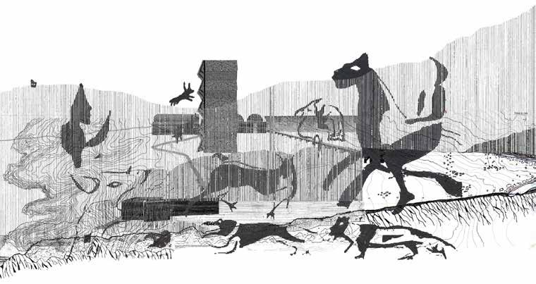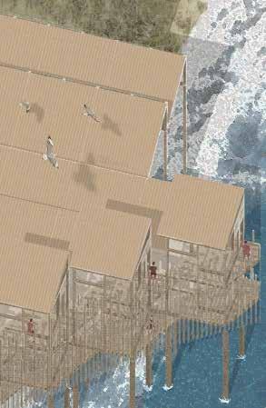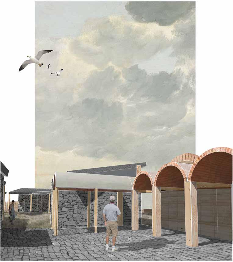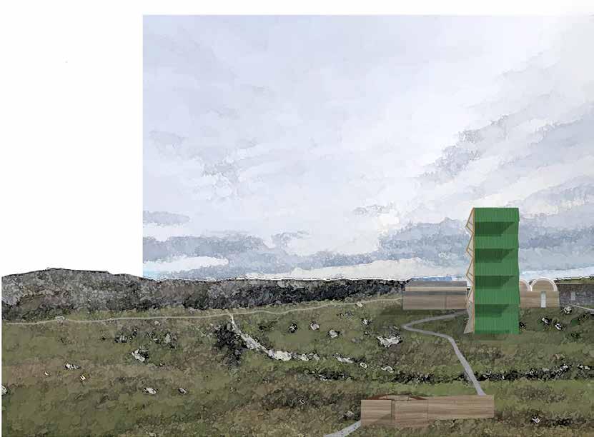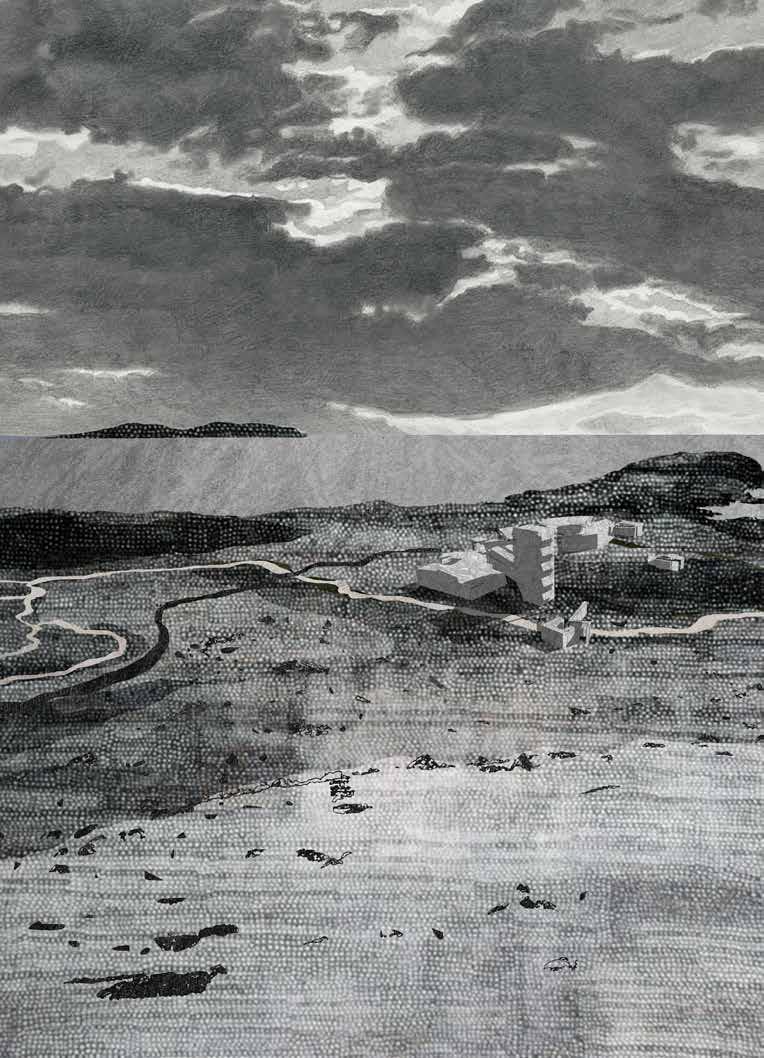 The Clare Island boarding school project brief looked at the creation of a modern school in the face of climate change. The site was on the flood plains of a rural island off the west coast of Ireland. My project looked closely at growing the islands dwindling population and economy by keeping local second level students at home and bringing an influx of students from the mainland to the island. I also focused on building materials that were either found on the island or easily brought over from the mainland by ferry. My ethos with this project was to build with the natural environment, not against it. The interior spaces are flexible, allowing the local community to take ownership of the building, which will in turn pass on to the rising sea level as it inevitably reclaims the structure.