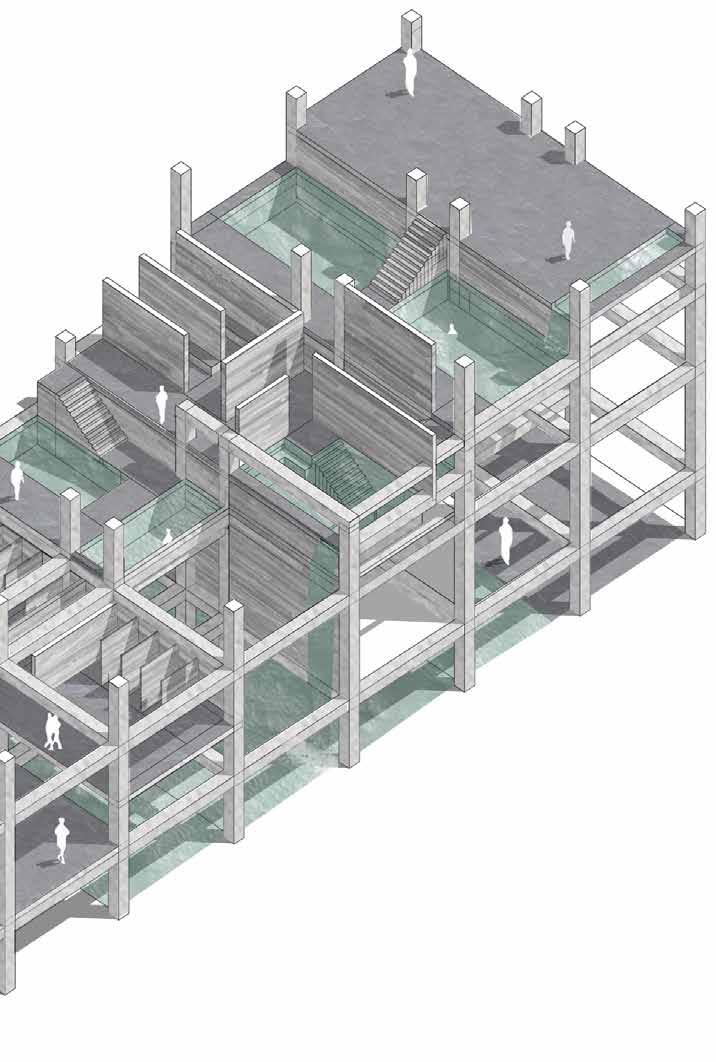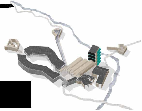 an axo of the settlement which shows a mix of typology and materialty, highlighting its evolution.