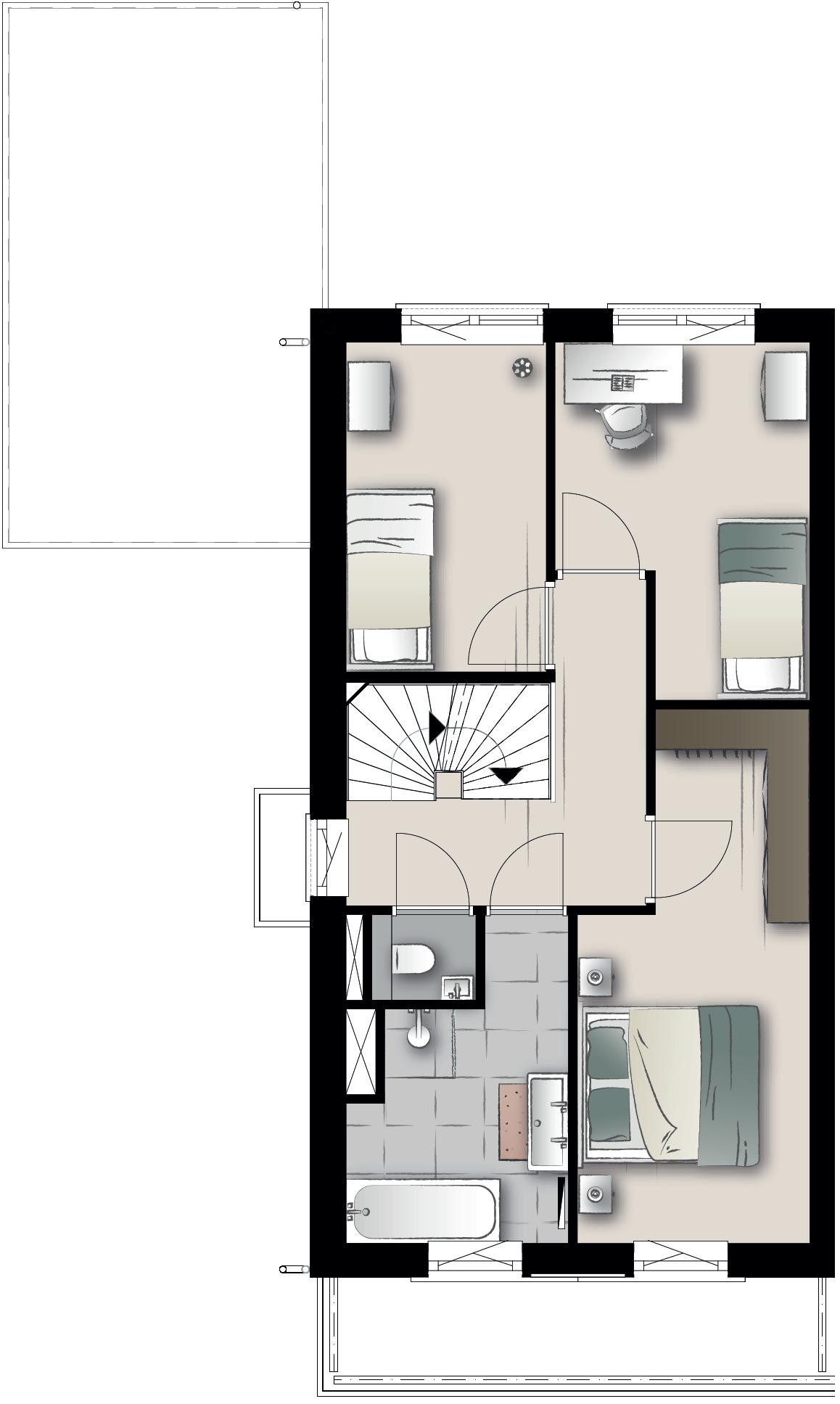 • Standaard vier slaapkamers en één badkamer