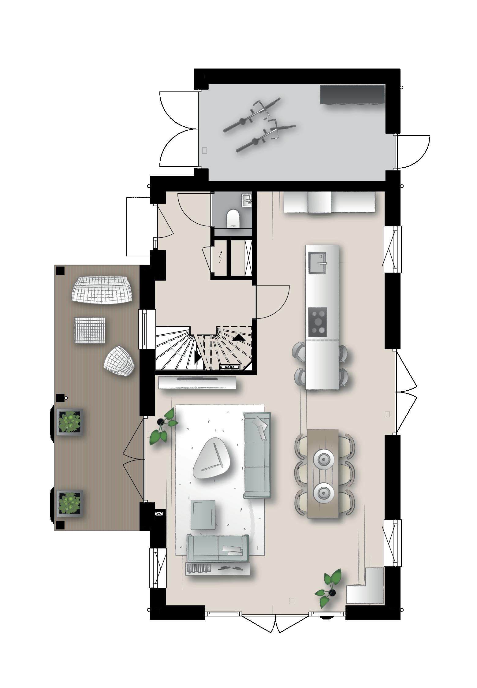 een flinke berging en privé parkeerplaatsen op eigen terrein. Met gebruiksoppervlakten die variëren van 153 m² tot 187 m² bieden deze woningen alle ruimte die je je kunt wensen. Geniet van voldoende daglicht en uitzicht over het eiland dankzij de vele raampartijen en openslaande deuren. In deze energieneutrale woningen leef je zeer comfortabel met lage energielasten.