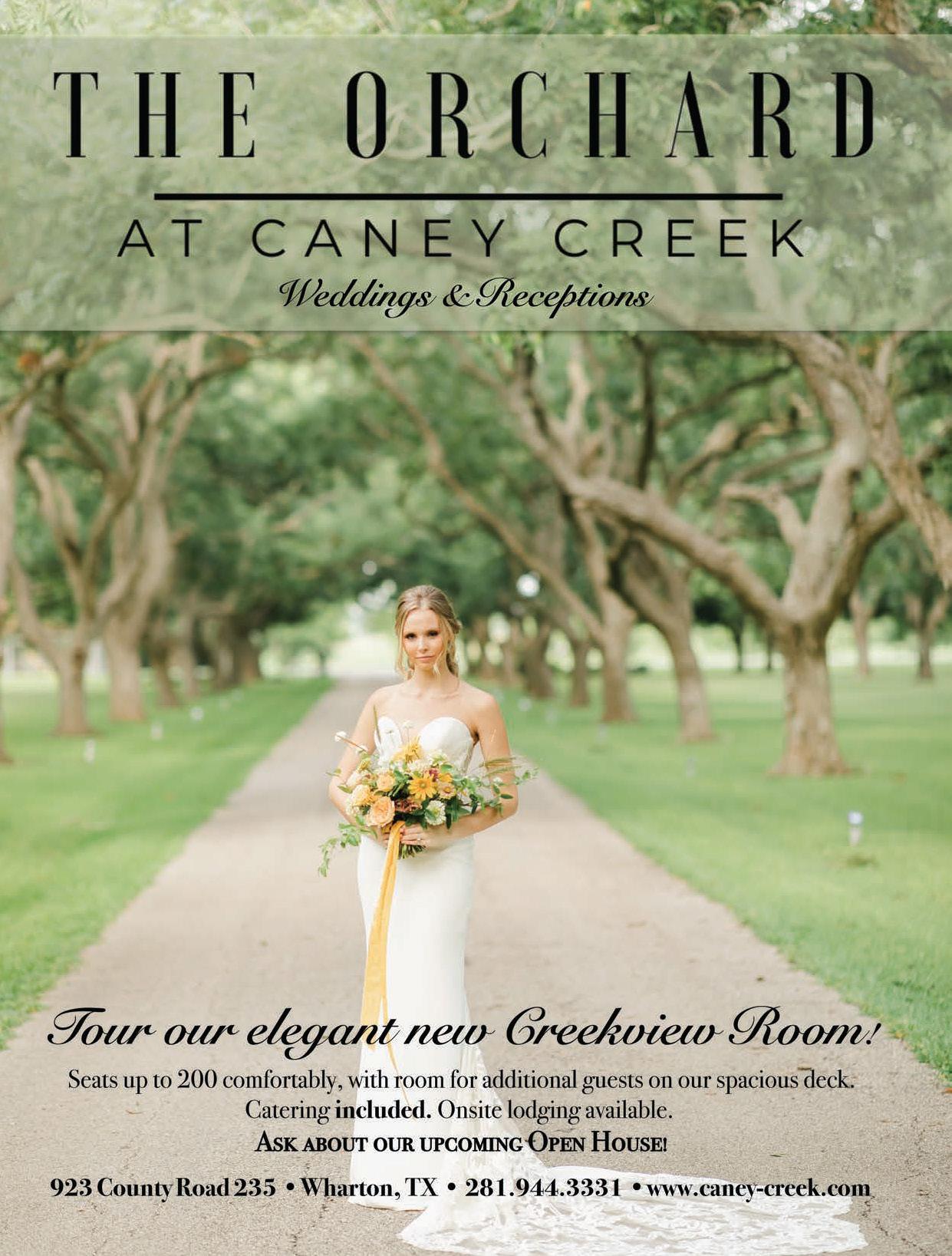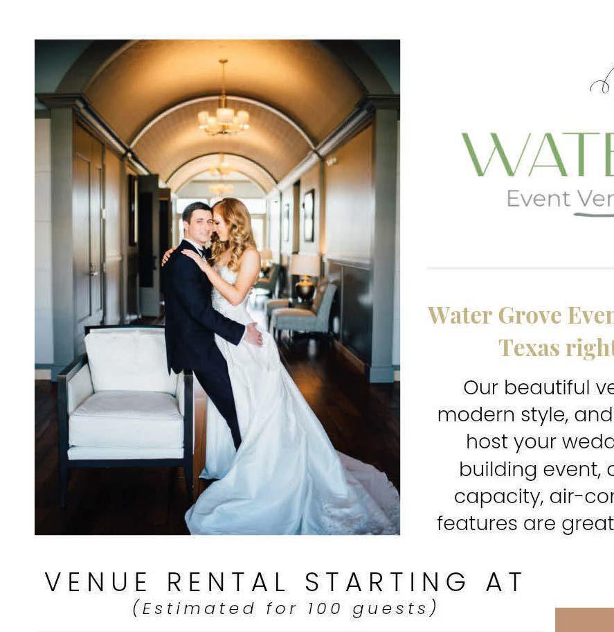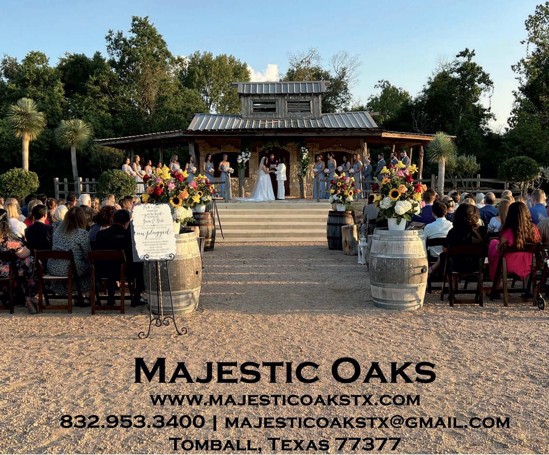 Begin yourhappily-ever-after at the Pavilion at Lago Bella, where rustic charm meets timeless elegance.Host your dream weddingin a stunning7,200sq. ft. indoor pavilion or undera romantic gazebo on a private lake. Nestled in North Houston’s lush Piney Woods,this 58-acre property offers breathtakingbackdrops for unforgettablemoments.Begin your forever at Lago Bella.