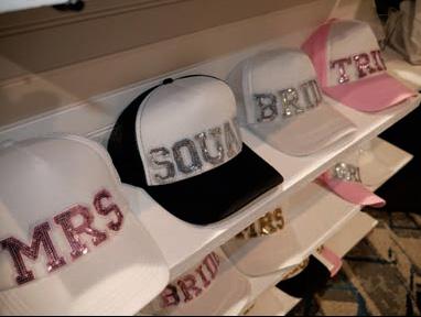Add a touch of sparkle to your bridal party look with coordinating ball caps—chic, playful, and perfect for those glam squad photo ops.