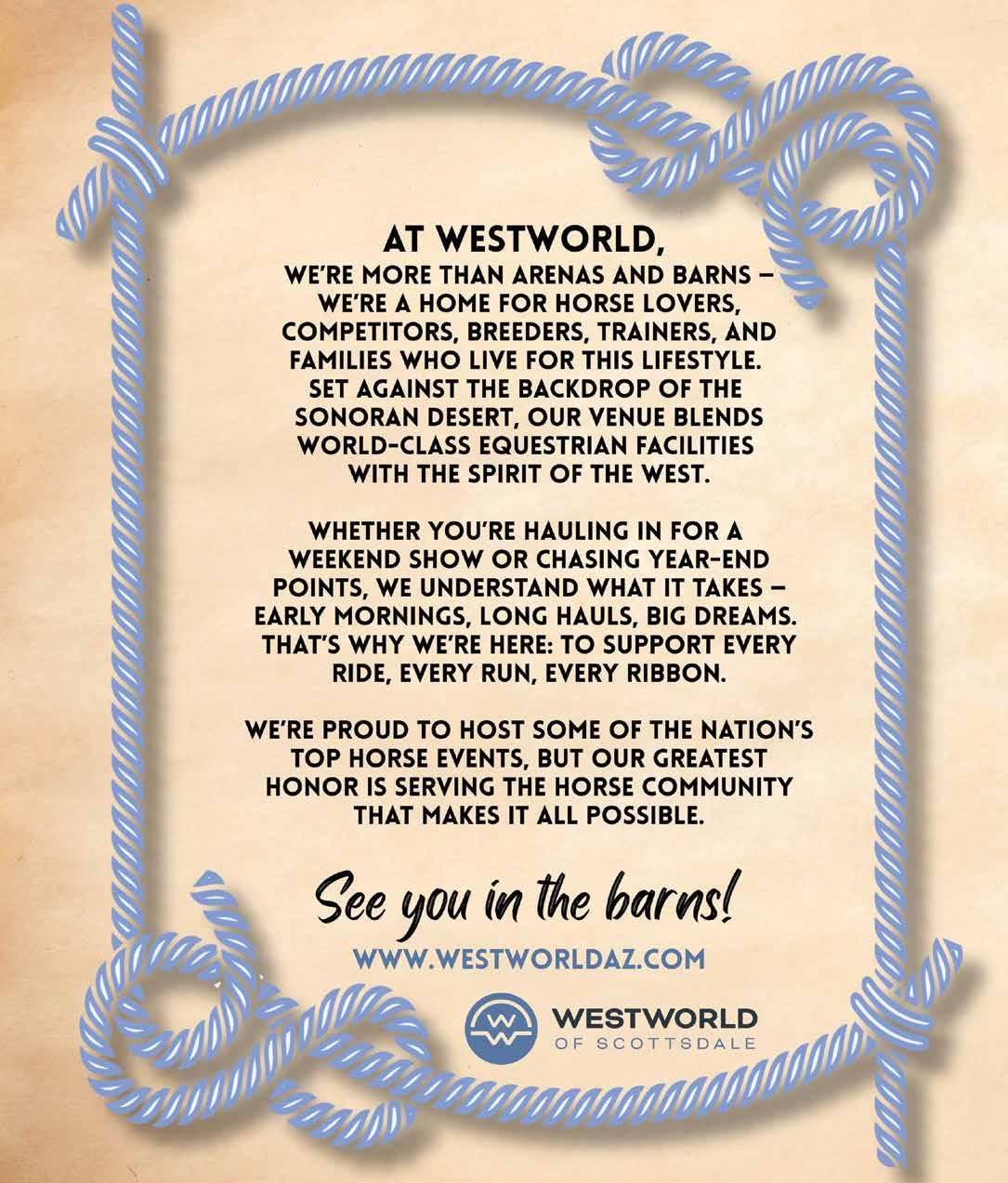 A -“WestWorld is central to our city’s identity and economy, and the City’s strategic plan ensures we are protecting that legacy while positioning ourselves for future growth. One of the plan’s key priorities is to “Compete for the best,” which means attracting highquality events while continuing to support the historical signature shows that have defined Scottsdale for decades.”
