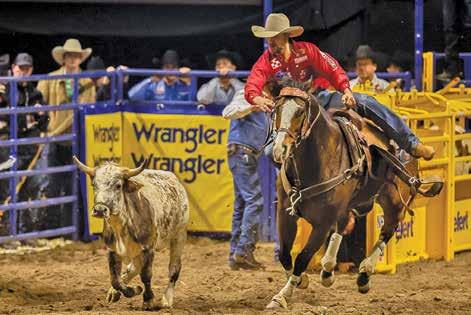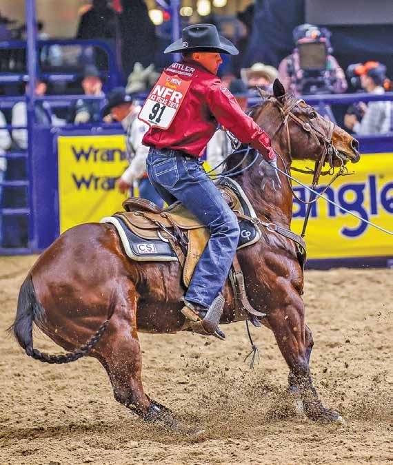 Thirteen years ago, 13-year-old Coleby Payne bought a 3-year-old heel horse prospect. Fast forward, and that kid, now 26, and that horse are headed to their secondstraight Wrangler National Finals Rodeo, which runs December 4-13 at the Thomas & Mack Center in Las Vegas. Cut Off My Spots – Coleby calls him “Coon” –was just voted the 2025 Nutrena Heel Horse of the Year, presented by AQHA, and Coleby could not be more happy or proud.