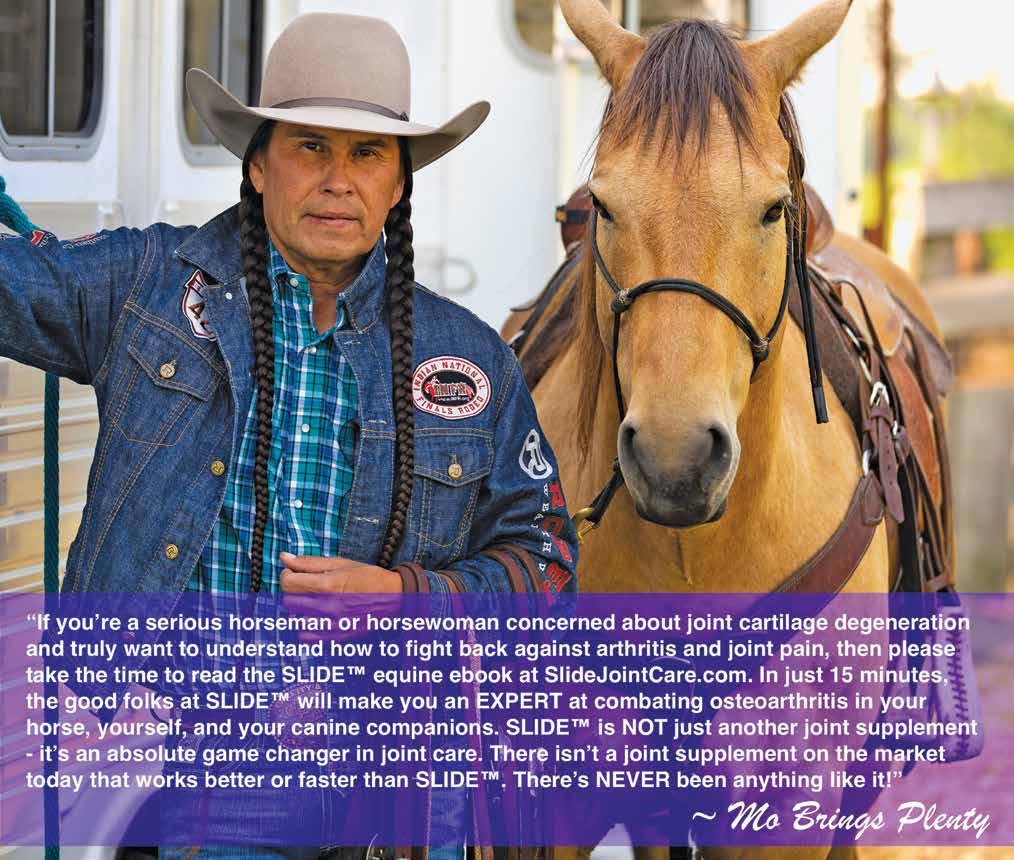 daily and I’ve been feeding those dosages to my horses for three decades now. I put all my young horses on SLIDE™ and I’ve never had any of them develop joint problems as they got older. And it seems to stop degeneration of cartilage in horses with existing joint problems as they all improve on SLIDE™. I’ve seen some very profound results in horses that were already suffering from joint pain after feeding them SLIDE™ for less than 30 days, and so have many others that have used SLIDE™ on their lame horses”.