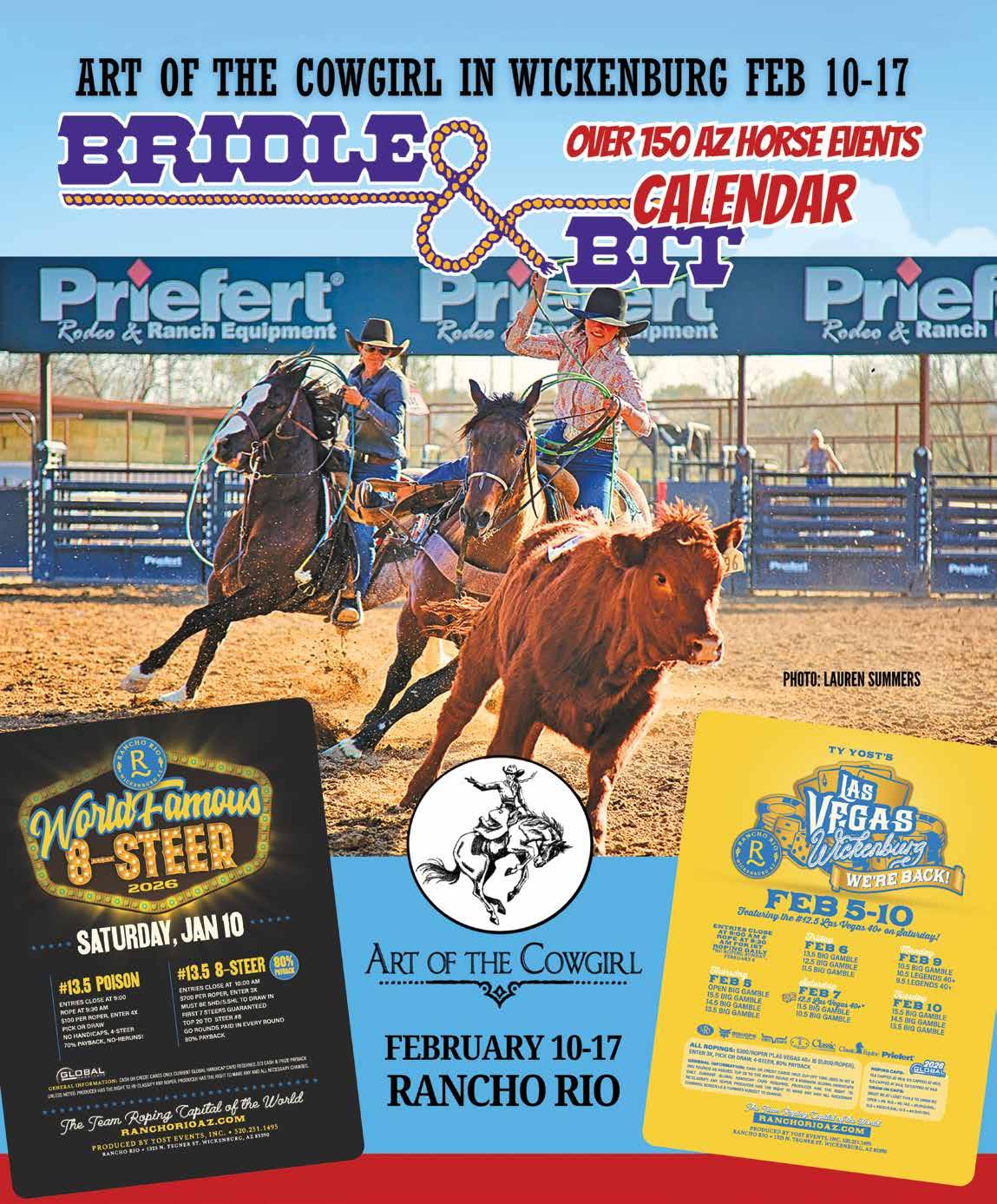 Rancho Rio Rancho Rio will host the Gathering at the River on January 13–14, beginning at 10:00am both days. This unique event combines horsemanship, worship, and fellowship, featuring an inspiring lineup of performers and clinicians. Guests include Crystal Lyons, singer and evangelist; Johnny Rowlett, a 7-time awardwinning country gospel singer; Mary Styer, national recording worship artist; and Tana Poppino, 3-time NFR qualifier. Bill and Dude Overton, a 3x NSPRA All Around Champion team, will also be part of the program, along with Dale and Tandy Drye of Drye Land Leather Co. The Gathering blends faith, community, and Western lifestyle into a powerful two-day experience. For information, contact Dude Overton at overtondude@ gmail.com. emails: masiktas.ak-chin.nsn.us