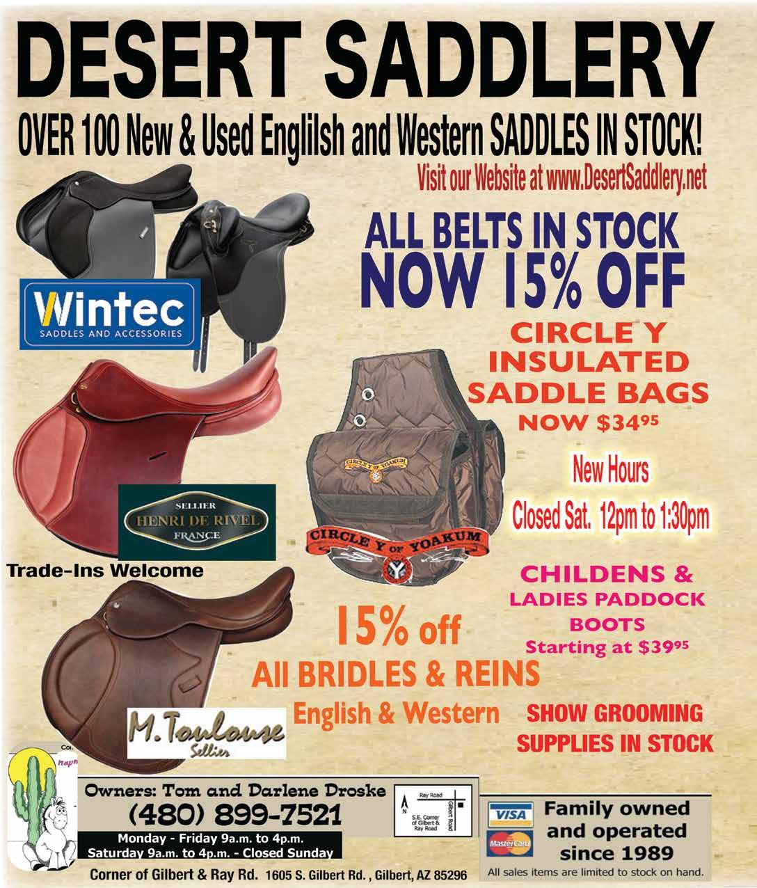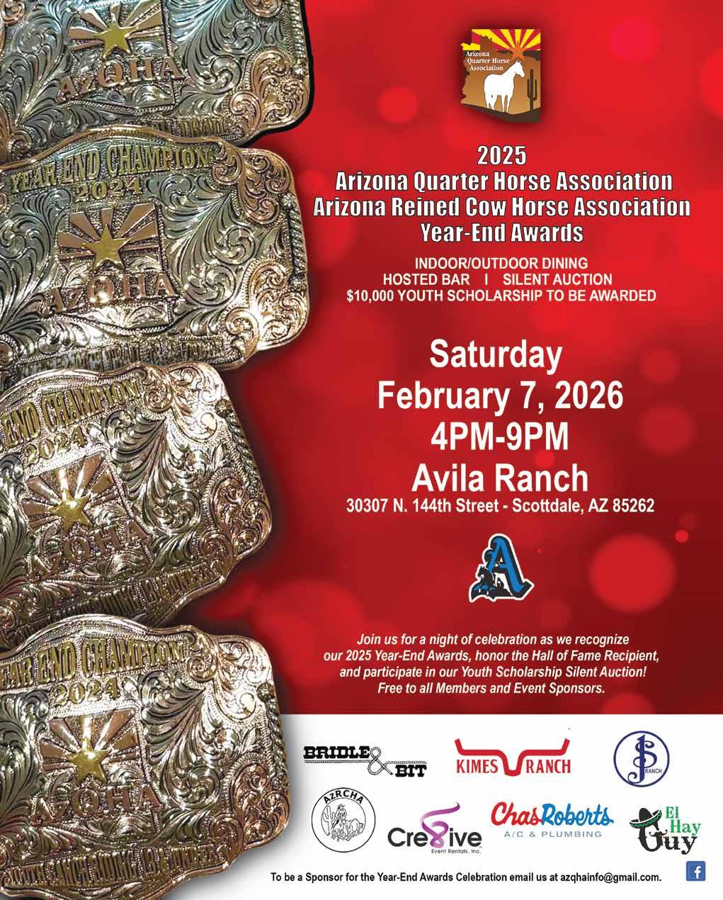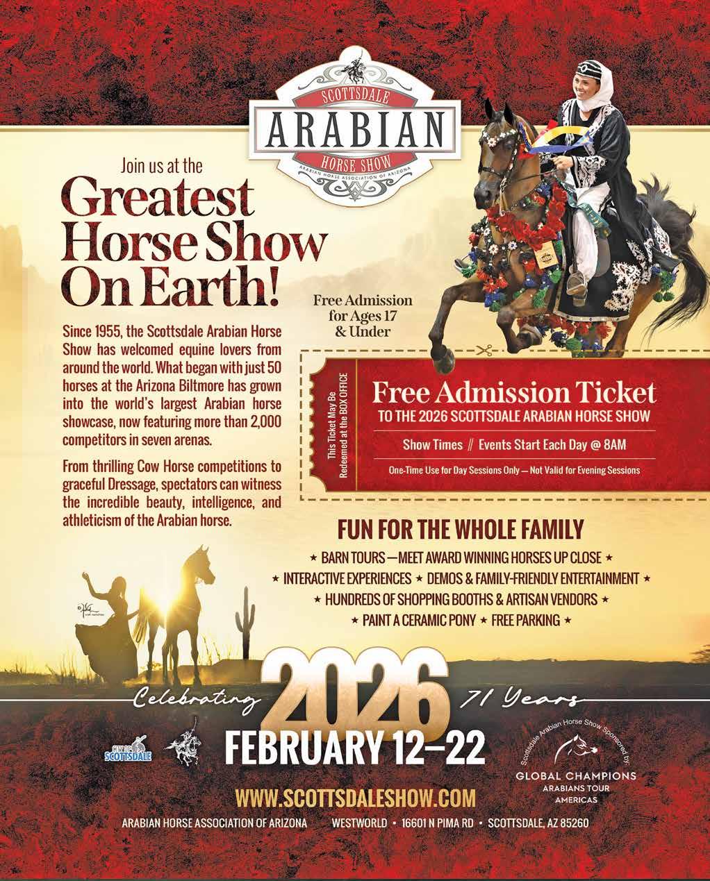 entry fee, $10 arena fee, and a one-time $30 award fee per horse/ rider combo. Awards are given to the top six in each class, with no minimum show requirement to qualify. This supportive environment encourages horsemanship, skill, and partnership between horse and rider. Visit www.WesternSaddleClubofPhoenix.com for details and registration.