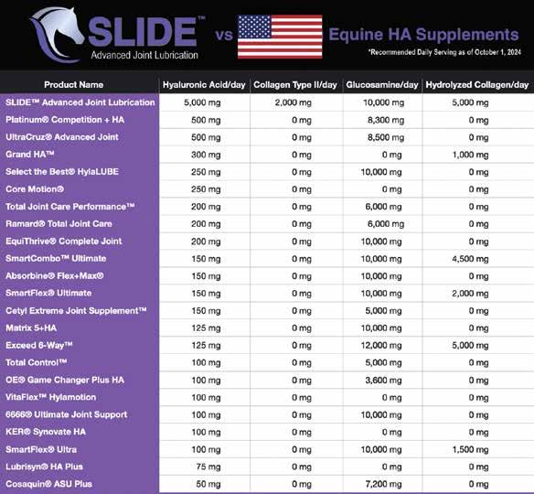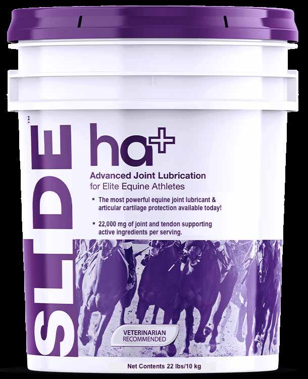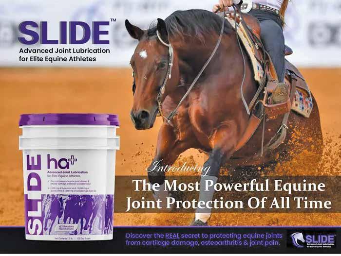 lubrication than a horse ridden for pleasure because of the workloads they place on their joints. There are some really good horses that have had their competitive careers cut short due to joint damage. But it doesn’t have to be that way anymore if horse owners take a preventative approach using SLIDE™”.