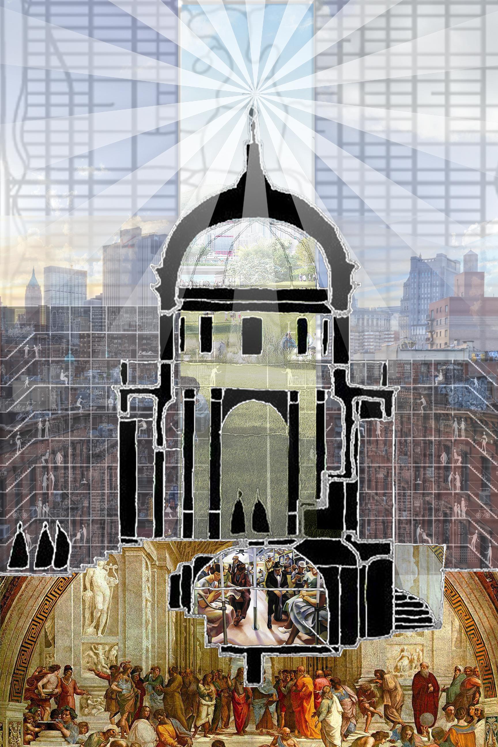 The New Collective Commons ties into existing physical and social networks of the Charlottesville community, enhancing the relationship between Charlottesville residents and University students. Located at the intersection of academic buildings, student housing, and residential neighborhoods, the site presents the opportunity to serve local stakeholders as both a student-oriented building and a community center. The proposal hybridizes civic amenities and academic spaces with the aim to blur existing lines of separation between the student body and broader Charlottesville community.